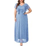 رقبة على شكل حرف V وأكمام مرفرفة: يتميز برقبة على شكل حرف V أنيقة تحيط بوجهك وعظمة الترقوة بشكل أنيق، هذا الفستان الرسمي ذو الحجم الكبير تم تشطيبه بأكمام رومانسية مزدوجة الطبقة تتحرك معك، مما يضيف لمسة أنثوية ناعمة إلى كل إيماءة.