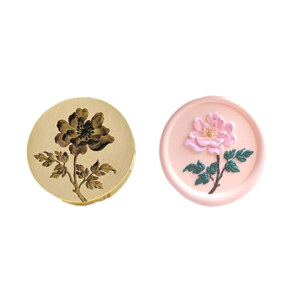 ختم شمع منقوش ثلاثي الأبعاد لدعوة الزفاف ومغلف تغليف الهدايا (رأس نحاسي فقط، الفاوانيا)