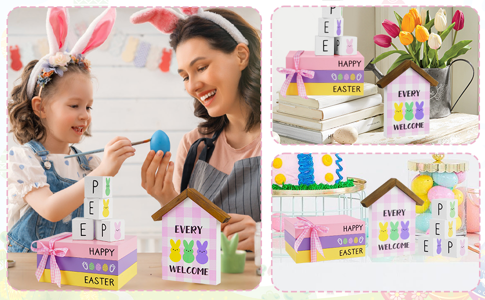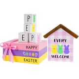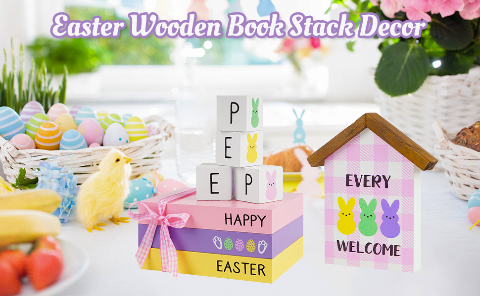 8 قطع من كتب عيد الفصح الخشبية - كومة أرنب الربيع للرف/الرف، ديكور المزرعة مع كتب خشبية باستيل، مجموعة هدايا عيد الفصح