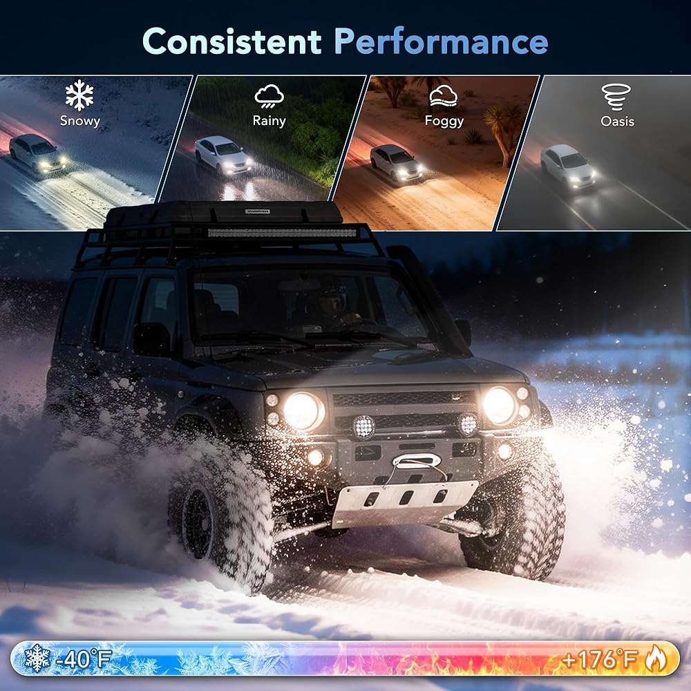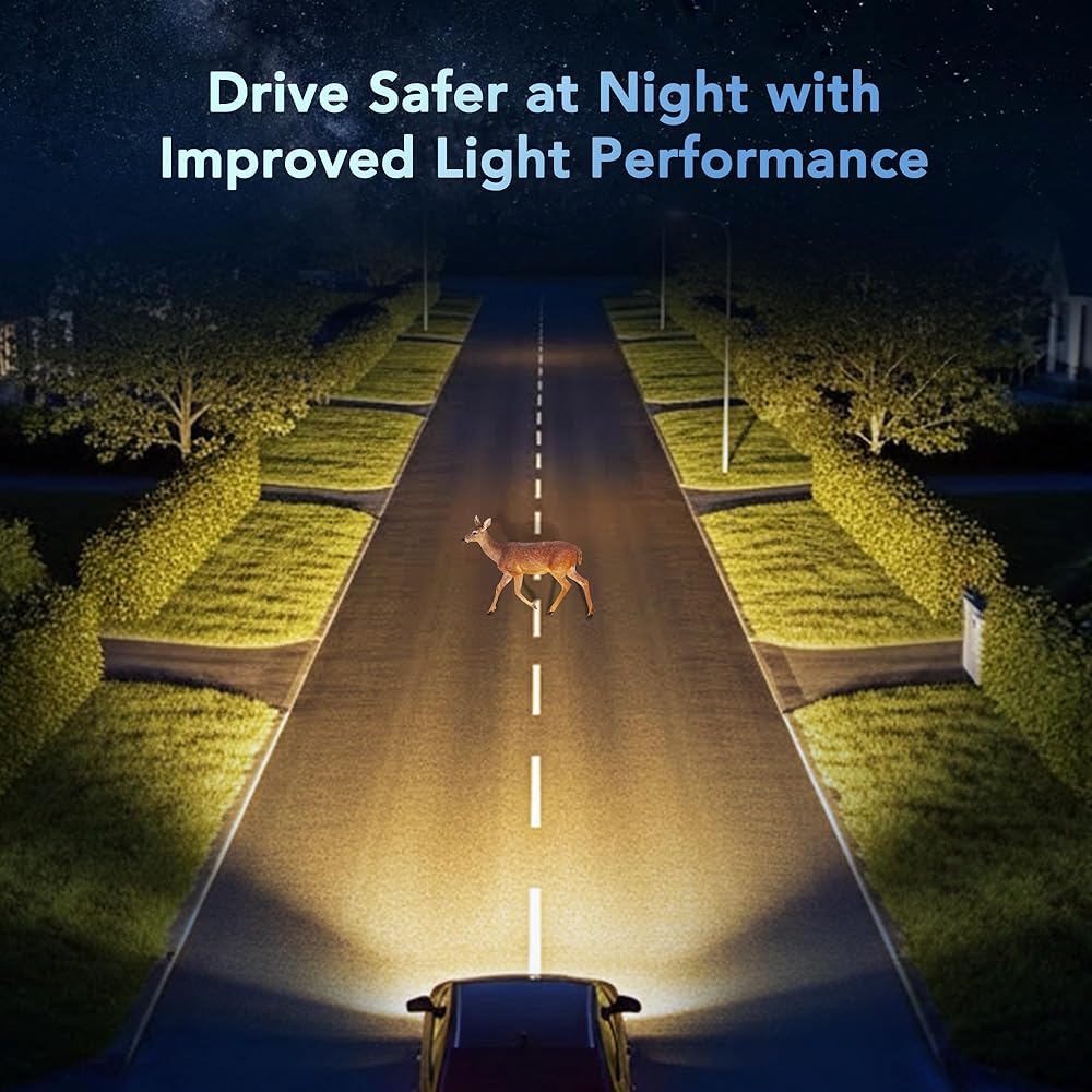 مخرج ضوء ثابت: يوفر إضاءة متسقة وموزعة بالتساوي لرؤية واضحة دون وهج أو نقاط ساخنة أو مناطق مظلمة، مما يجعل القيادة الليلية أكثر أمانًا وراحة.