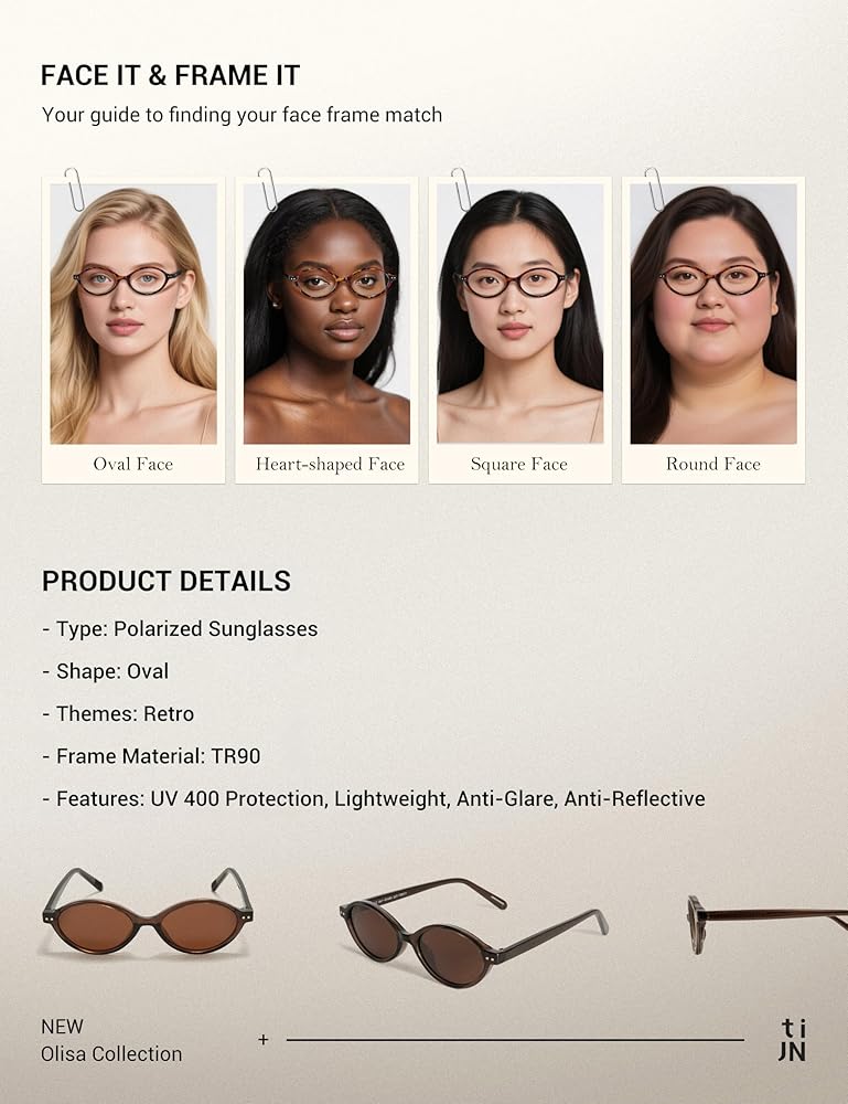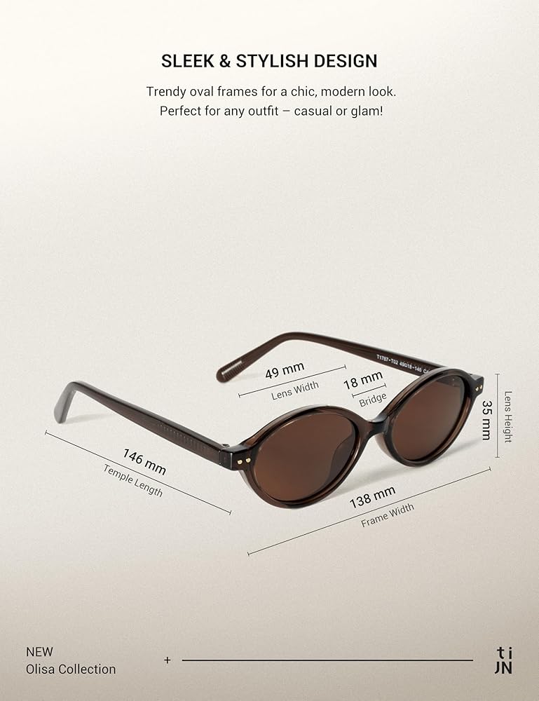 【ملاءمة مريحة بالحجم الحقيقي】عرض العدسة 49 مم | جسر 18 ملم | المعبد 146 ملم. إطار بيضاوي خفيف الوزن مصمم لملاءمة متوازنة ومريحة. يمكن تعديل أذرع الصدغ بلطف لتناسب أشكال الوجه المختلفة. قارنها مع نظارتك الشمسية الحالية للحصول على أفضل ملاءمة