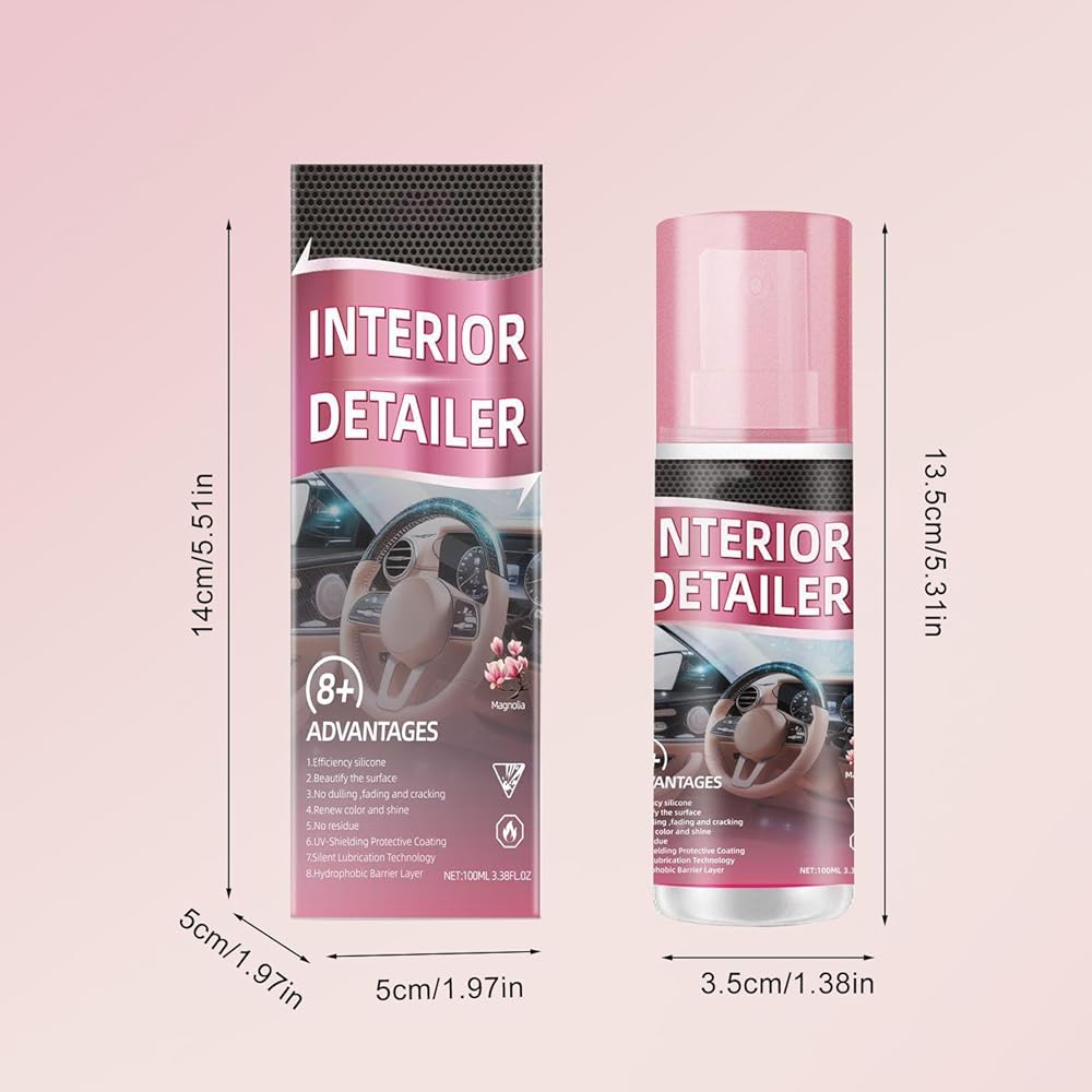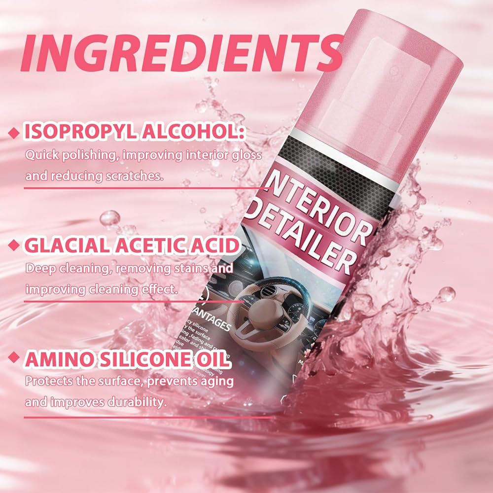 رذاذ التفاصيل الداخلية: يمكن لرذاذ التفاصيل الداخلية إزالة الأوساخ وبقع الزيت بشكل فعال لضمان الحصول على مظهر داخلي أكثر نظافة وصحة. خصائصه يمكن أن تجعل السطح أكثر وضوحًا، وتقلل من امتصاص الغبار، وتجعل التنظيف أسهل في المستقبل