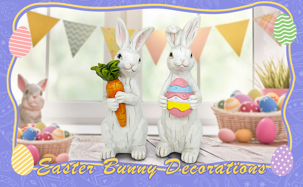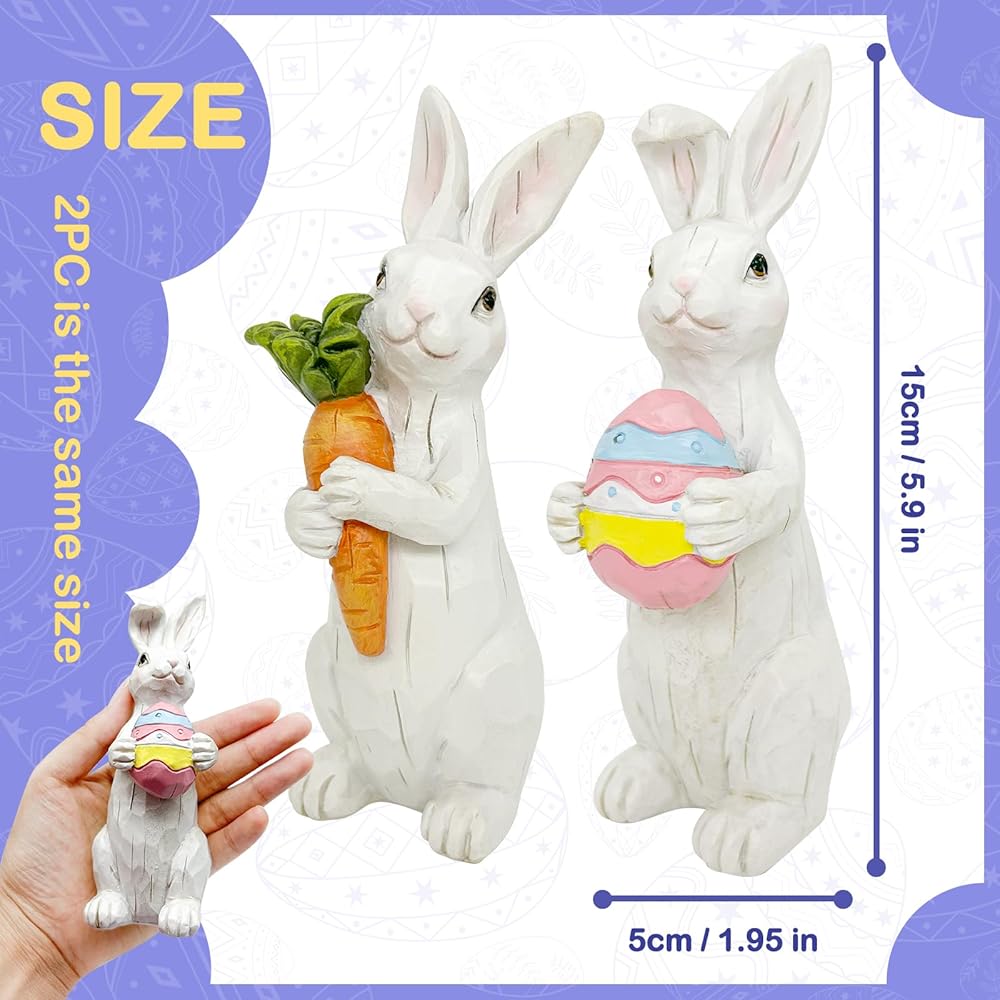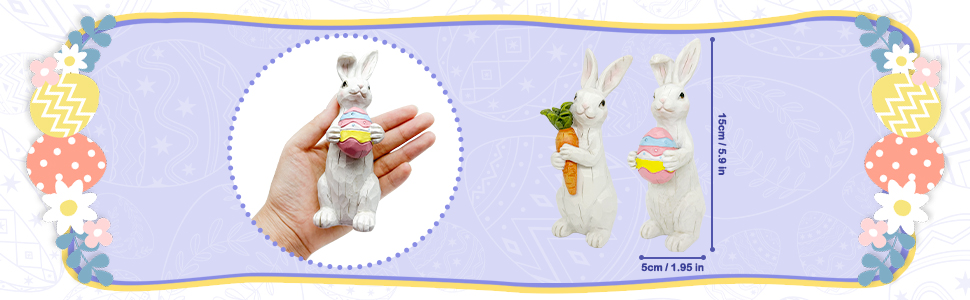 حجم لطيف - بفضل حجمها الصغير وتصميمها خفيف الوزن، يمكن عرض تماثيل راتنج عيد الفصح هذه بسهولة في أي مكان في المنزل. ما عليك سوى وضعها على الرفوف والمدافئ وطاولات الطعام والصواني ذات الطبقات لإضفاء جو لطيف على عيد الفصح.