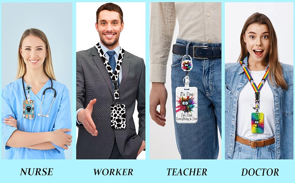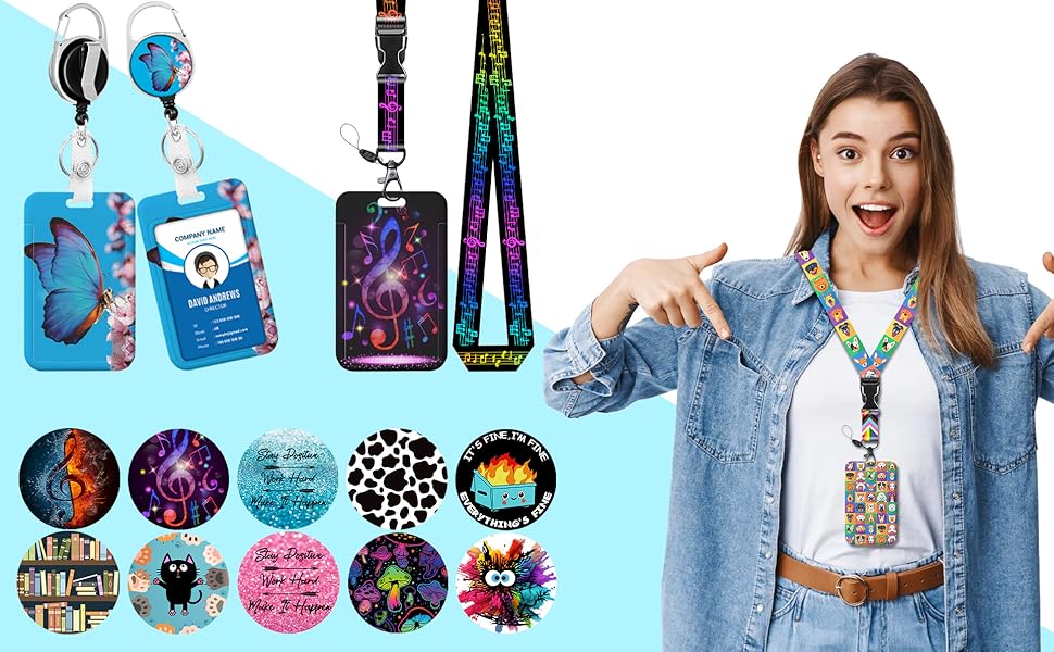 تصميم فريد: يمكن أن يحمل بطاقتين، حبل شارة الهوية يتميز بتصميم نابض بالحياة مثير للاهتمام ومضحك. الألوان الزاهية والتصميم الفريد يجلب السعادة والمرح لنفسك وللآخرين.