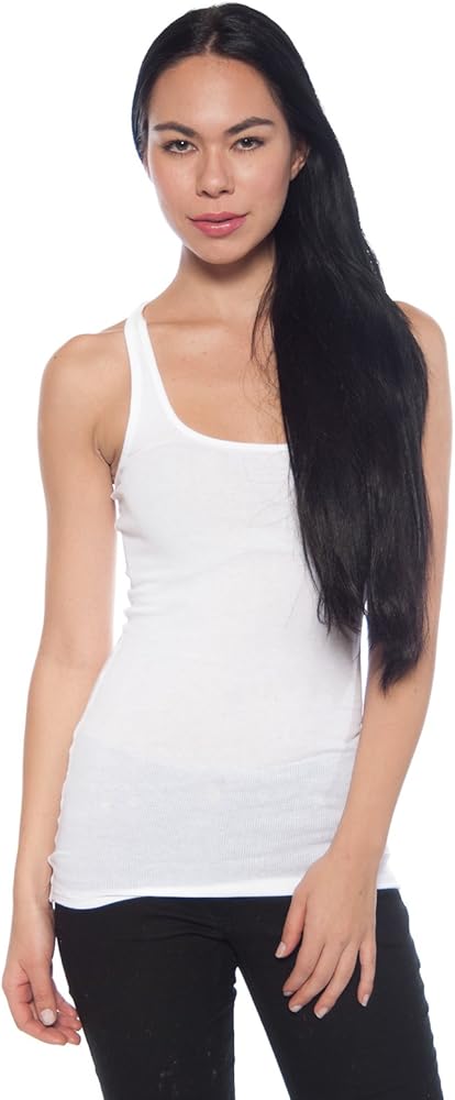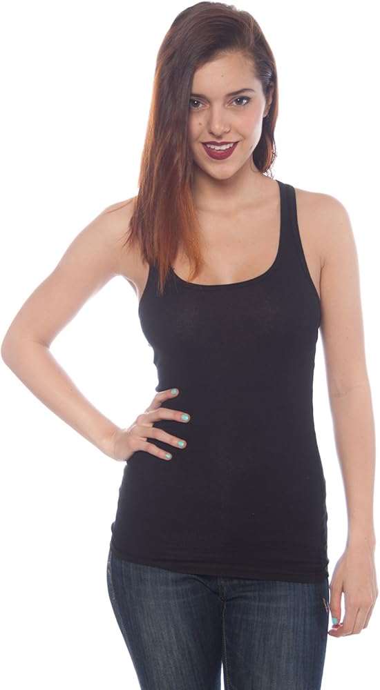 A Basic back tank featuring a rib knit, low scooped neckline and triple stitching on hemline with 27 1/2' Razor back. Unlined, knit and lightweight. Material is 92 % Cotton 8 % Spandex: makes it a Super strech fabirc.