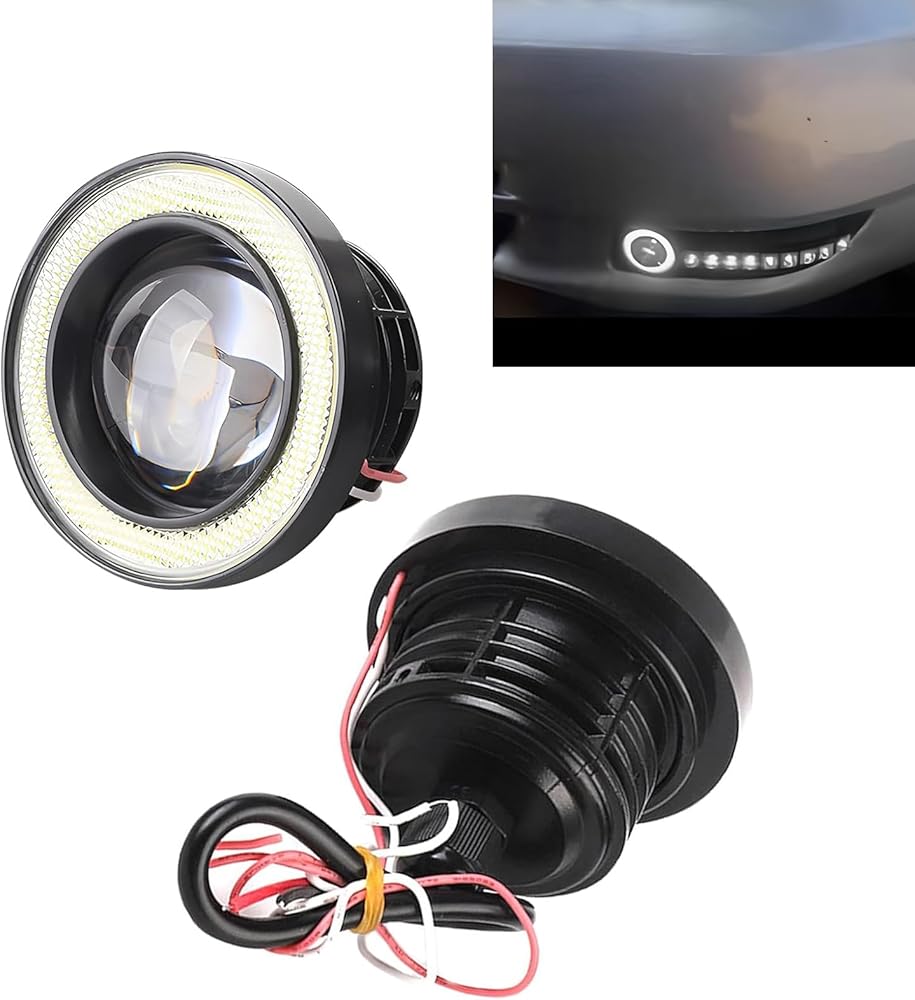 Package: You will get 2 x car angel eye LED fog light, the light and halo color are white, one purchase can meet the whole car installation, can be directly connected to the original fog light switch together with the lens to achieve synchronous opening and closing.
