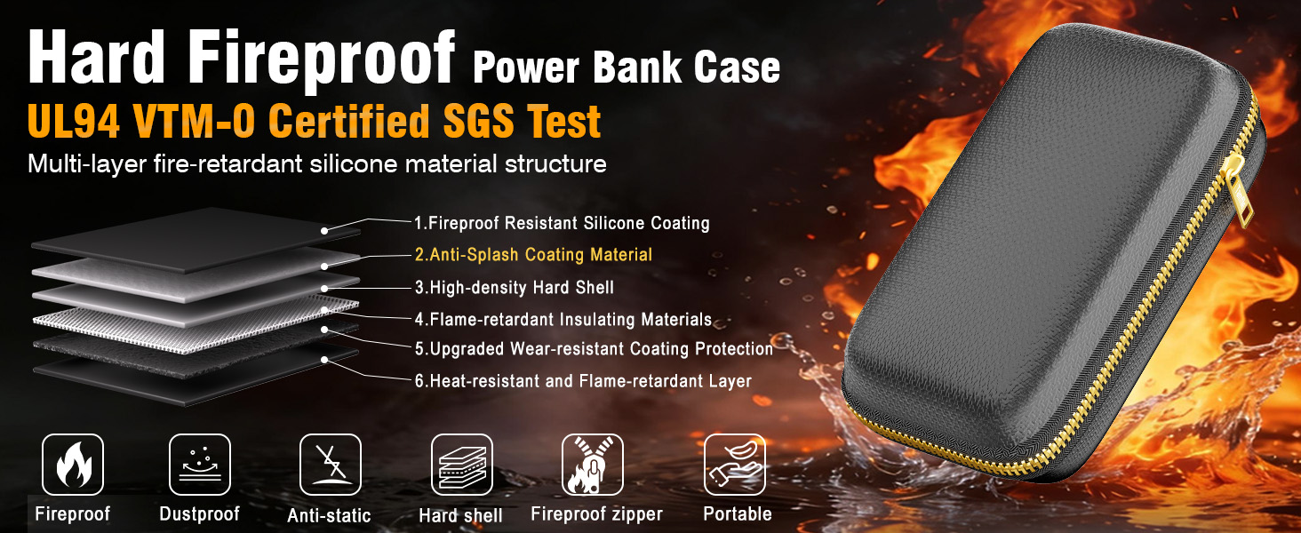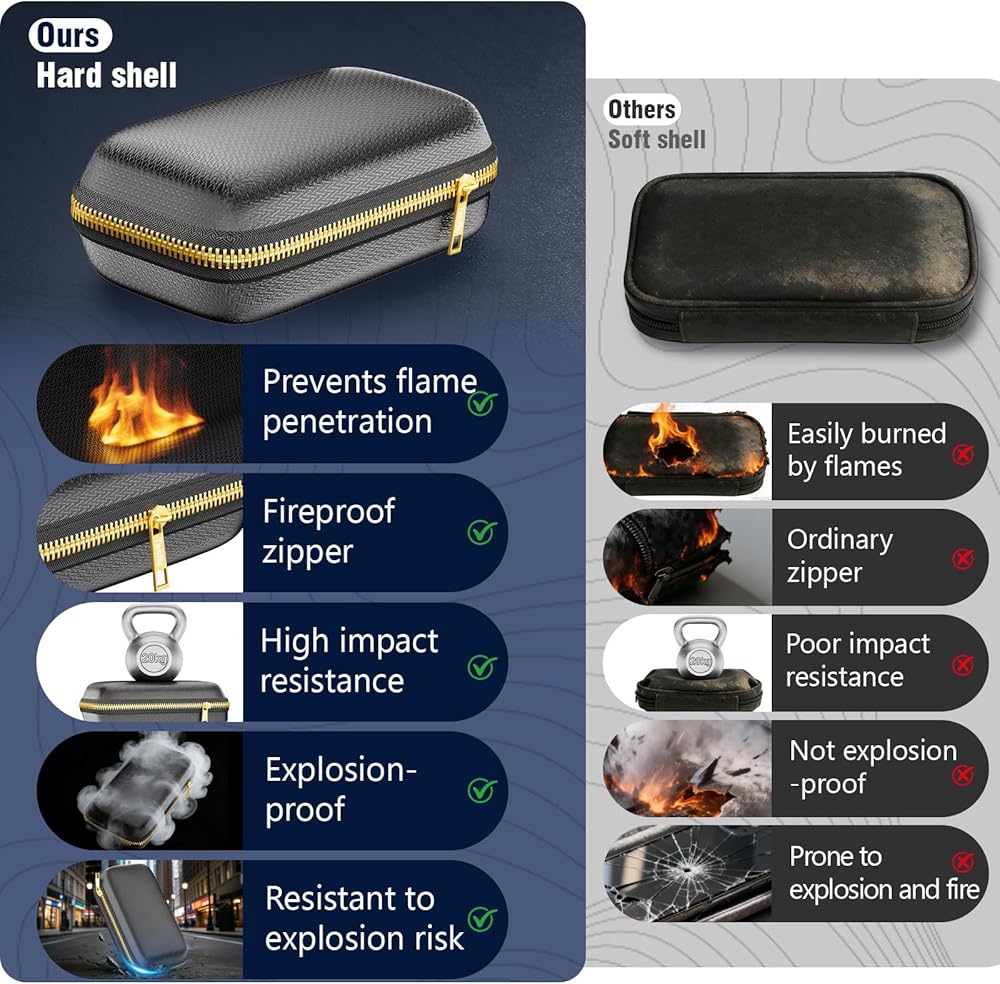 • [حماية ضد الانفجار مع سحاب مقاوم للحريق] يشكل بنك الطاقة مخاطر محتملة على السلامة أثناء الاستخدام والتخزين، مثل الحريق العرضي أو التوسع أو الانفجار. تتميز حافظة بنك الطاقة Tamfile بهيكل مقاوم للانفجار مع سحابات مقاومة للحريق، مما يوفر حماية أكثر شمولاً. يساعد هيكلها القوي على منع الانفجارات في المواقف غير الطبيعية، بينما تمنع السحابات المقاومة للحريق اختراق اللهب، مما يوفر لك أمانًا إضافيًا.