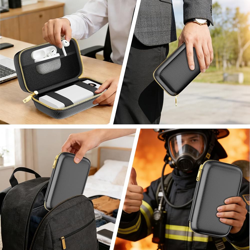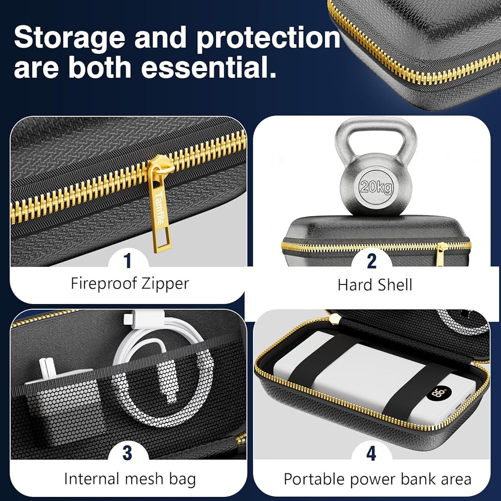 حافظة صلبة للحماية المحمولة مقاومة للحريق من تامفيل لبنك الطاقة، صندوق حمل إلكتروني مقاوم للانفجار وعازل للحرارة مع سحاب مقاوم للحريق وجيب داخلي شبكي، للهاتف، ونظام تحديد المواقع، والقرص الصلب، وشحن USB