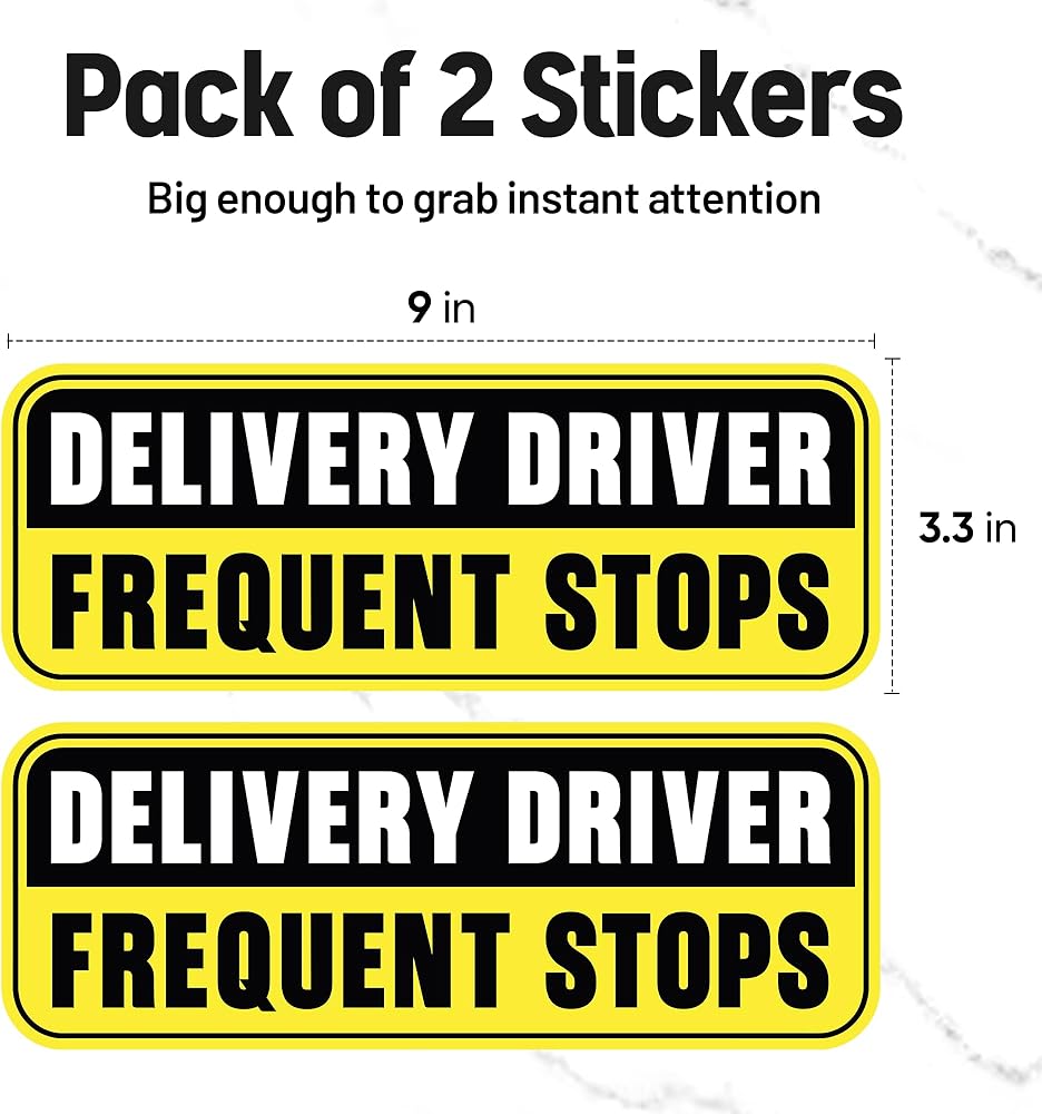 Make your delivery routes safer and more efficient with this essential Frequent Stops warning sign sticker. Perfect for delivery drivers who make multiple stops throughout their routes, this high-visibility decal helps alert other motorists of frequent stopping patterns. The bold design ensures clear visibility to surrounding traffic, helping to reduce potential hazards during frequent delivery stops. This durable bumper sticker is designed to withstand various weather conditions while maintaining its appearance. Ideal for delivery vans, trucks, and fleet vehicles, this professional-grade sticker helps communicate your vehicle's stopping patterns to other drivers. The adhesive backing allows for straightforward application on clean, smooth surfaces. Whether you're a professional courier, food delivery driver, or manage a delivery fleet, this warning sticker is a practical addition to enhance road safety awareness during your daily routes.