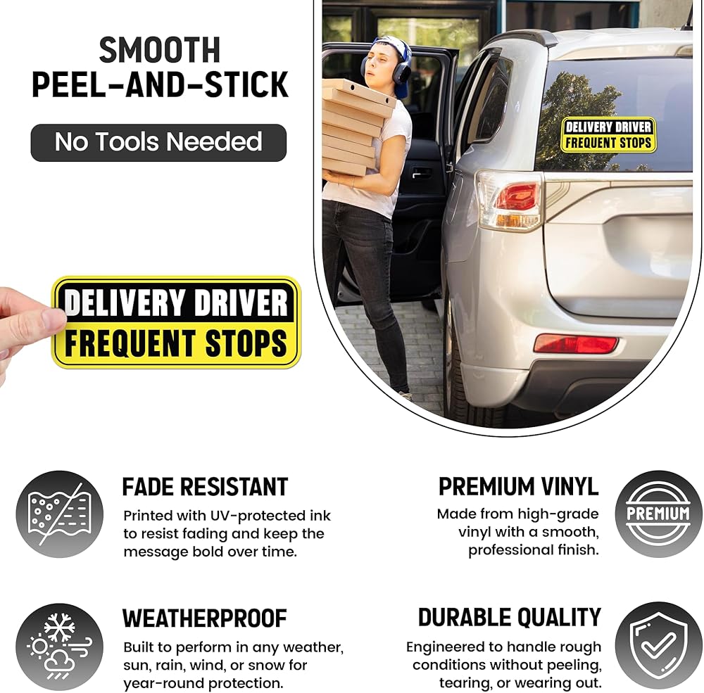 MADE TO LAST – Constructed from high-quality vinyl for ultimate durability, this delivery driver sticker is built to withstand daily wear and tear.