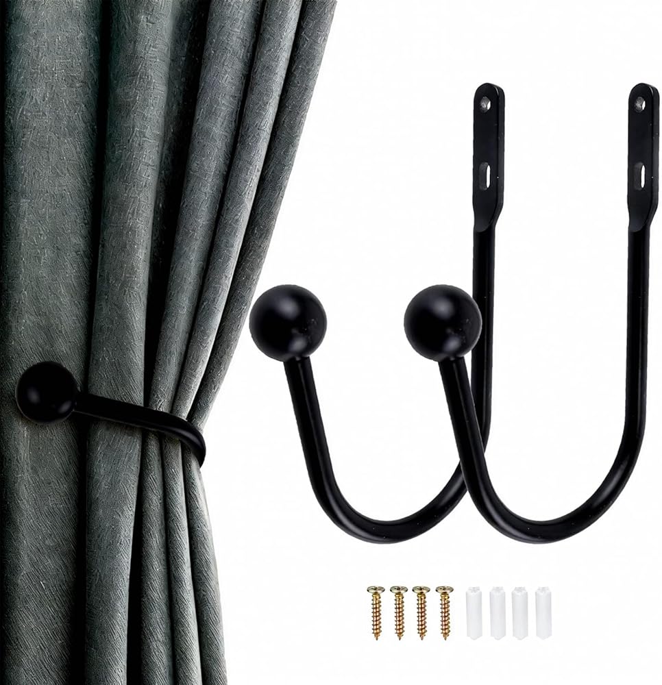 فائدة متعددة الوظائف: تم تصميمها في المقام الأول كحامل ستائر/ربطات ستائر، ولكنها مثالية أيضًا لتعليق المعاطف أو القبعات أو المناشف أو إطارات الصور أو الحقائب أو العناصر الزخرفية. حل تنظيمي مثالي لغرف المعيشة وغرف الطعام وغيرها.