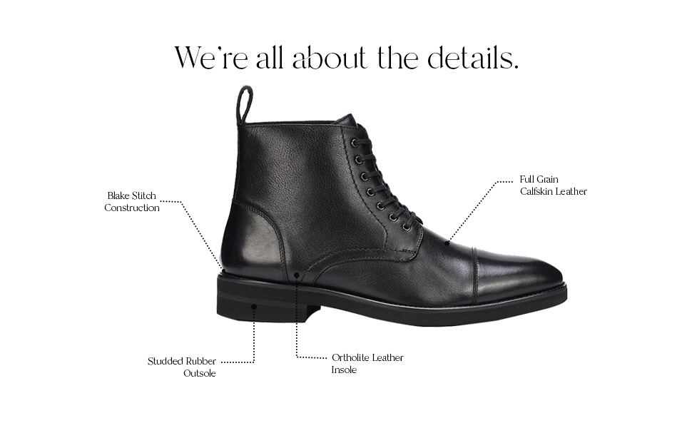 صناعة متقنة - مصنوعة من جلد العجل عالي الجودة المحبب بالكامل من مدبغة حاصلة على تصنيف ذهبي LWG، توفر هذه الأحذية المتانة والملمس الفاخر، بينما يضمن تصميم غرزة Blake راحة فائقة ومتانة وتصميم أنيق ومرن.