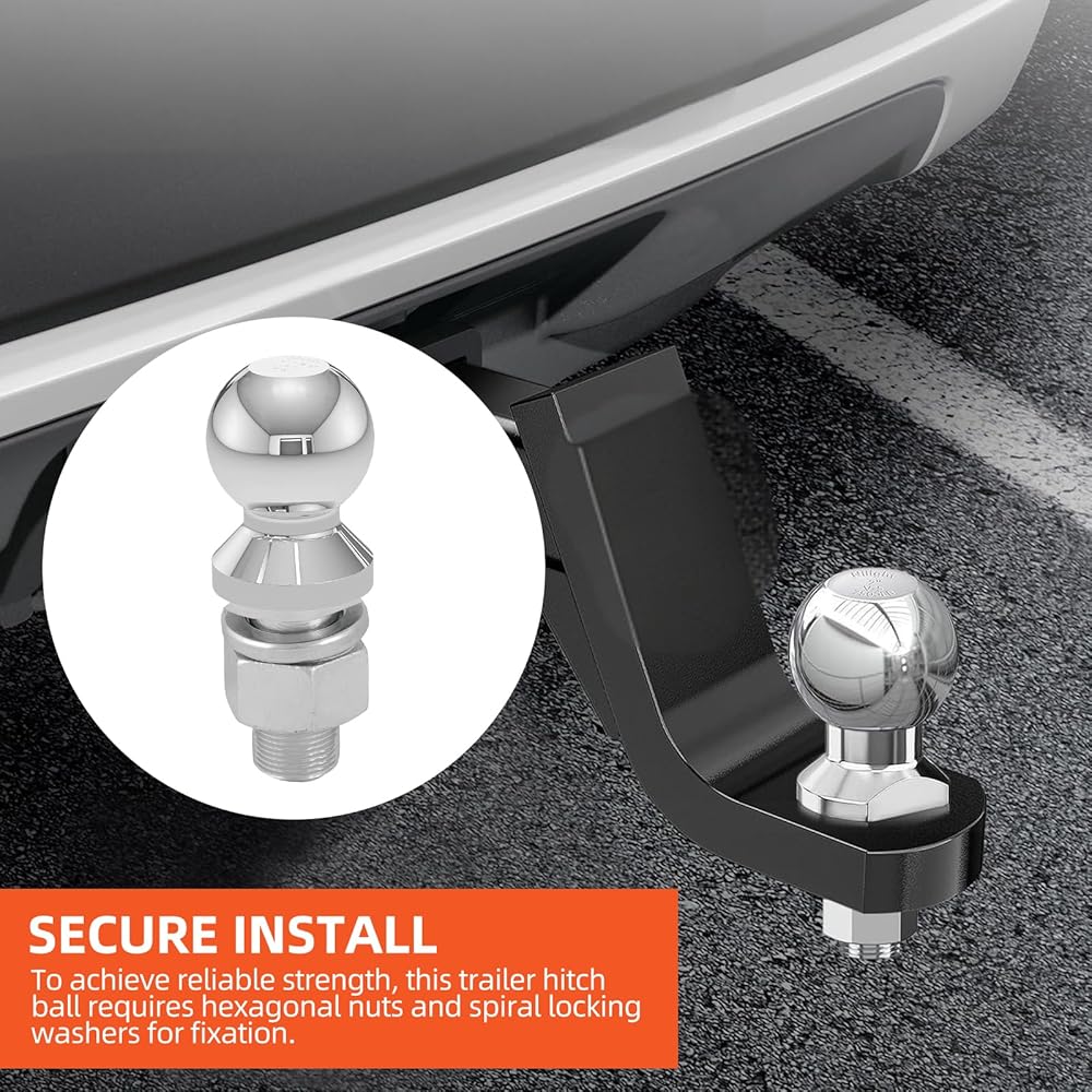 🔩 Complete Kit for a Reliable, Professional Install For a secure and lasting installation, this hitch ball comes as a complete ready-to-install kit。 It includes a zinc-plated hex nut and a helical lock washer to prevent loosening under vibration. For optimal safety and strength, we recommend tightening to the specified 90 lb.-ft. of torque。