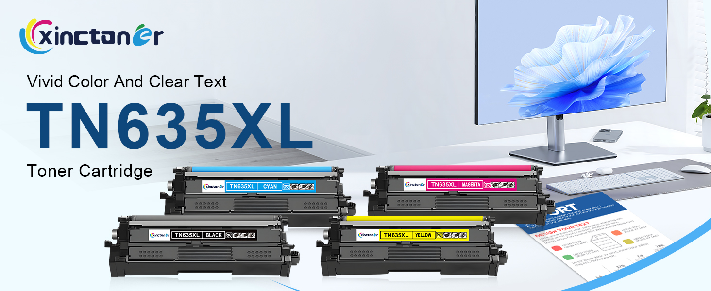 جودة عالية: خرطوشة حبر Xinctoner TN635XL تلتزم بإكسسوارات متينة، طباعة سلسة، ألوان نابضة بالحياة، نص واضح، مقاومة للبهتان