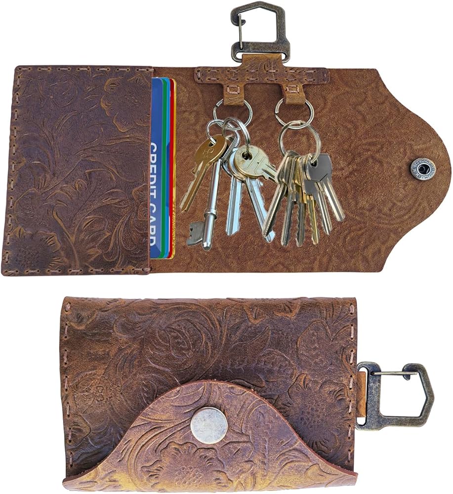 This key holder is carefully crafted by hand using full grain cow leather, Crazy Horse. It is high quality leather available and known for its strength, durability and ability to age beautifully over time. This leather key wallet offers both durability and a stylish look, making it suitable for both men and women.