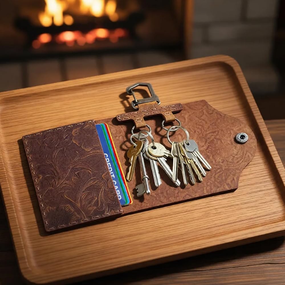 You can clip or place this key organizer to your belt, vest, bag, pocket or anywhere else you need. The leather pouch can hold keys, credit cards and some cash in each side pocket. This leather key holder is more than just a key holder, it's a stylish and functional designed to simplify your daily life.