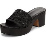 صنادل منصة للنساء منسوجة مريحة سهلة الارتداء، صنادل دائرية مفتوحة من الأمام وكعب سميك للصيف وحفلات الزفاف على الشاطئ in Kuwait