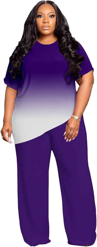 • التصميم: أطقم بناطيل فضفاضة بأرجل واسعة بمقاس كبير للنساء، قمصان بأكمام قصيرة غير متماثلة + بناطيل بأرجل واسعة وخصر عالٍ، أطقم رياضية، تتوفر مقاسات XL-5XL.