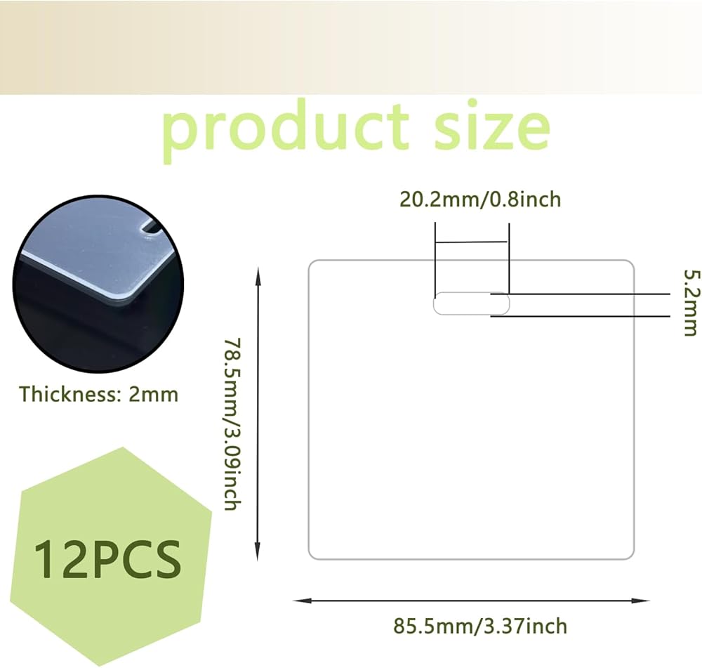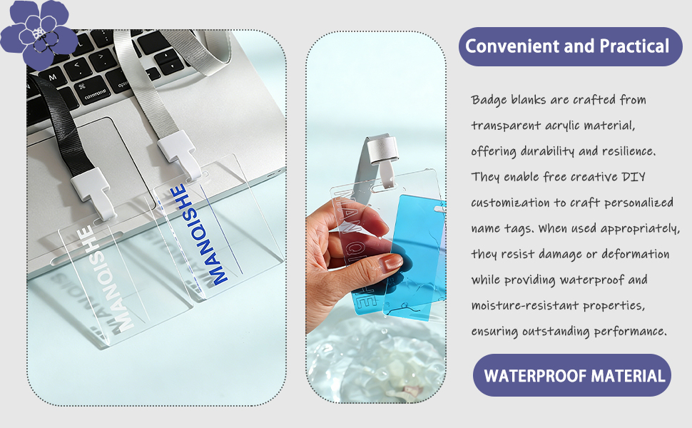 مادة متينة: الفراغات ذات الشارة مصنوعة من مادة أكريليك شفافة، وهي قوية ومتينة، وخفيفة الوزن لكنها صلبة. عند استخدامه بشكل مناسب، من غير المحتمل أن ينكسر أو يتشوه، كما أنه مقاوم للماء والرطوبة، مما يضمن أداءً ممتازًا.