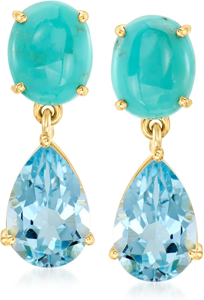 - أقراط من الذهب الأصفر عيار 18 قيراطًا فوق الفضة الإسترليني والتوباز والفيروز المستقر للنساء.