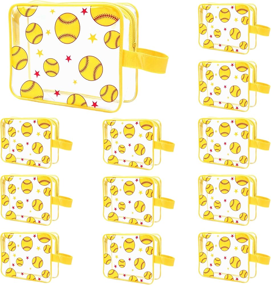 12 قطعة من حقيبة مكياج شفافة سوفت بول مع سحاب ومقبض - منظم حقيبة من البولي فينيل كلوريد، حقيبة سفر مقاومة للماء للنساء - حقائب رياضية جيدة، هدايا الفريق، زينة ومستلزمات أعياد الميلاد