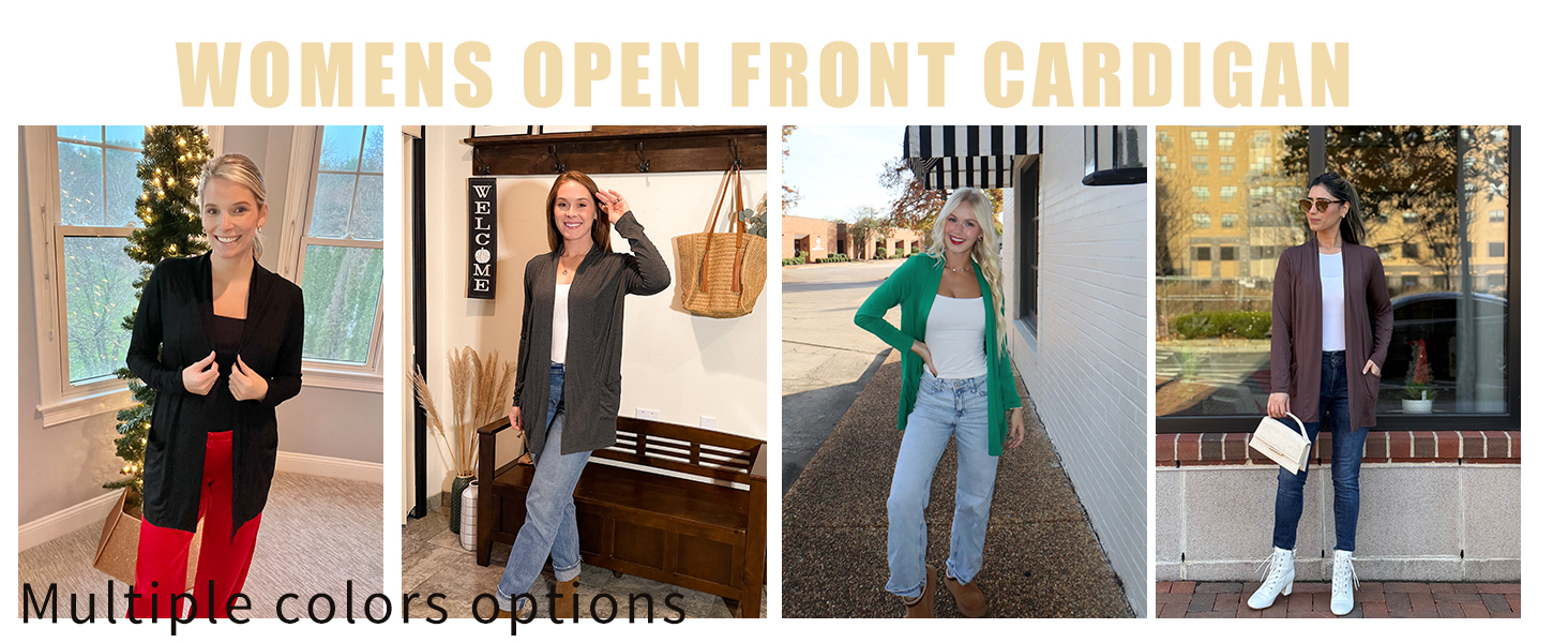 Cardigans for women trendy, available in sizes S-3XL to suit different body types and variety of colors like Black, Brown, White, Navy Blue, Grey, Pink, Green, Purple, Royal Blue, Orange, Red, Coral, Blue, Burgundy, Peach.