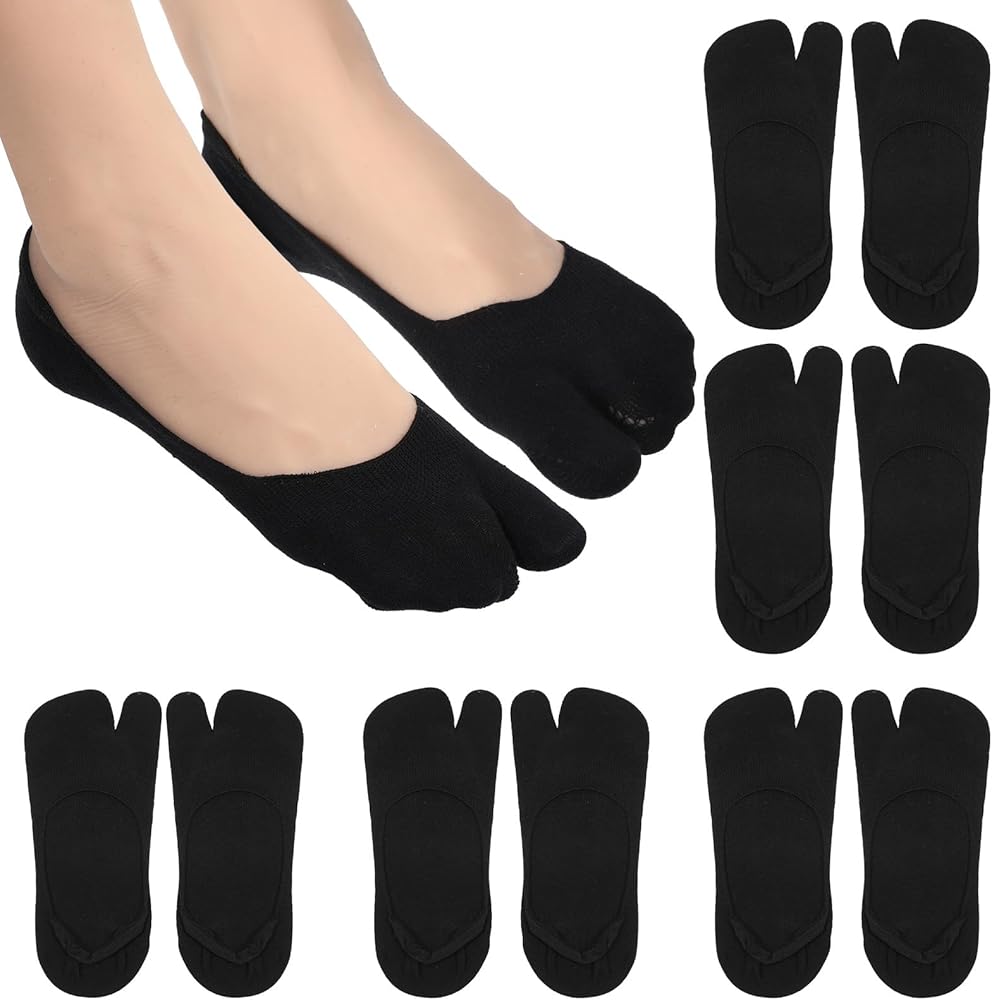 جوارب تابي، 5 أزواج من الجوارب ذات الوجه بالتخبط، جورب تابي للنساء منقسم عند أصابع القدم، جورب قطني مسطح، جورب قارب أسود، قصة منخفضة للأحذية الرياضية، جوارب غير مرئية، لا تظهر جوارب مضحكة