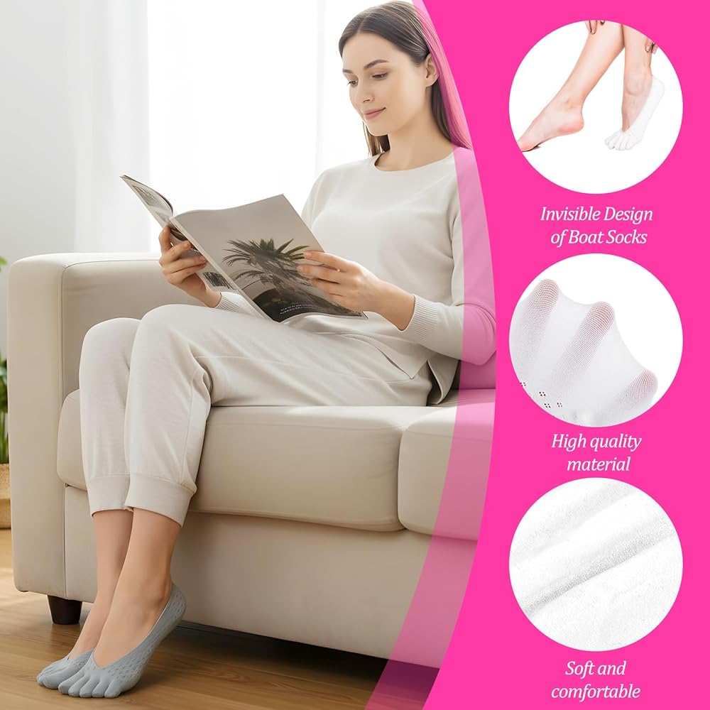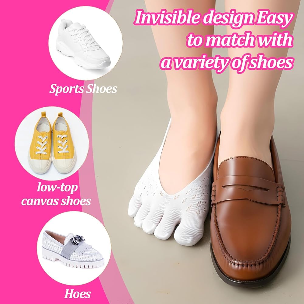 【Versatile Daily Wear】The universal one-size design of these toe separator socks is engineered to stretch and conform to most foot shapes, typically fitting women's shoe sizes 5-9 and many men's sizes. Their invisible boat sock profile makes them a versatile accessory for different occasions and outfits.