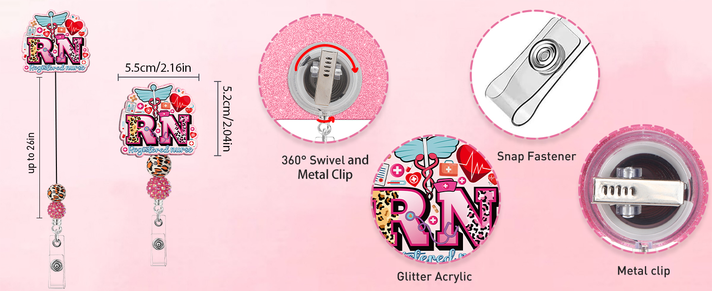 متعة ولطيفة من RN: تتميز بكرة شارة RN ذات التصميم الوردي بتصميم رائع يضيف سحرًا وشخصية إلى عملك اليومي، مما يضفي لمسة مبهجة مع الحفاظ على سهولة الوصول إلى بطاقة الهوية الخاصة بك