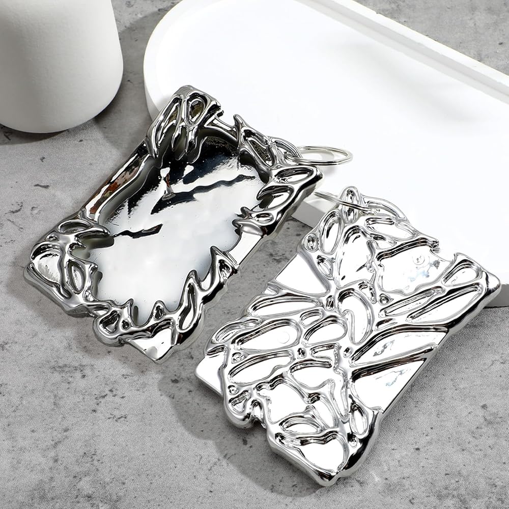 Stylish & Functional Design: Elevate your style with the Keychain Photo Holder, featuring a chic silver electroplate frame with an irregular shape that adds a touch of elegance to your everyday carry. This photocard holder is not just a fashion statement but a functional accessory that securely holds your favorite pop idol photos, ID cards, or membership cards, making it a must-have for pop culture enthusiasts.
