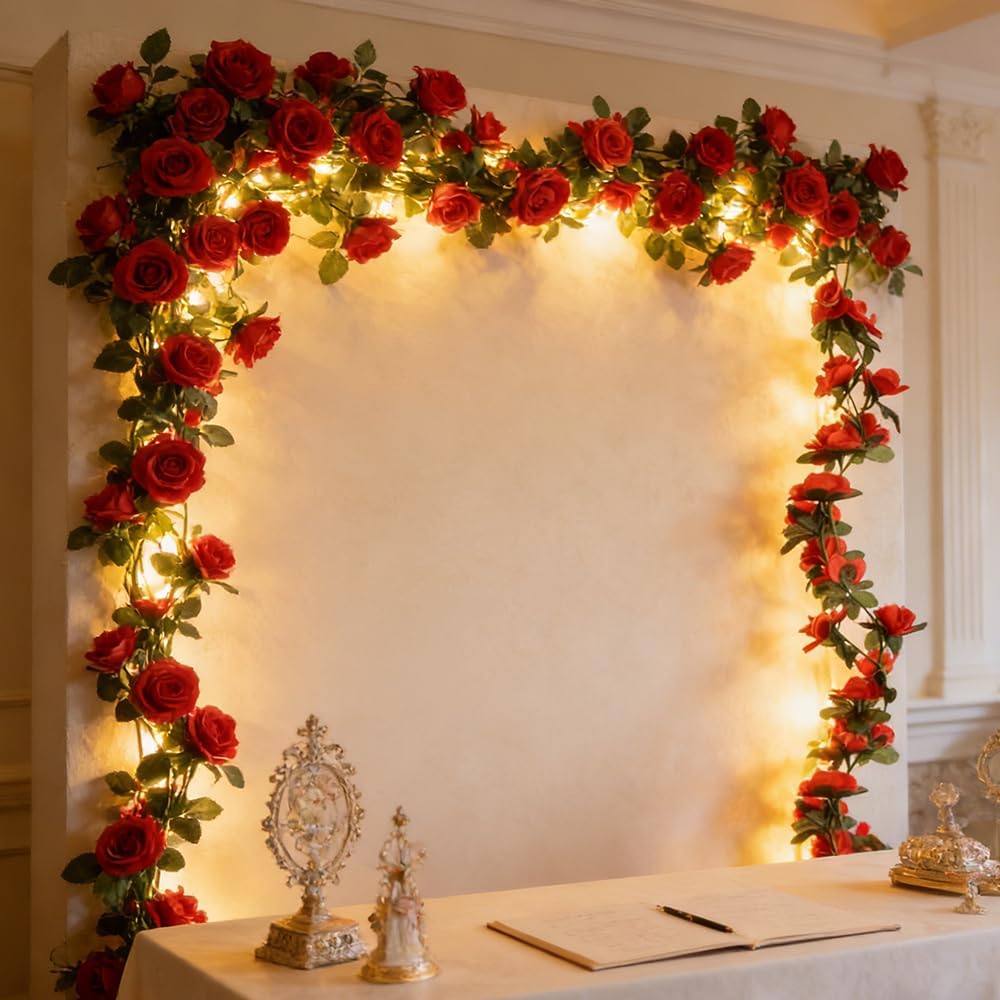 Transform your space with these enchanting artificial rose garland vines.