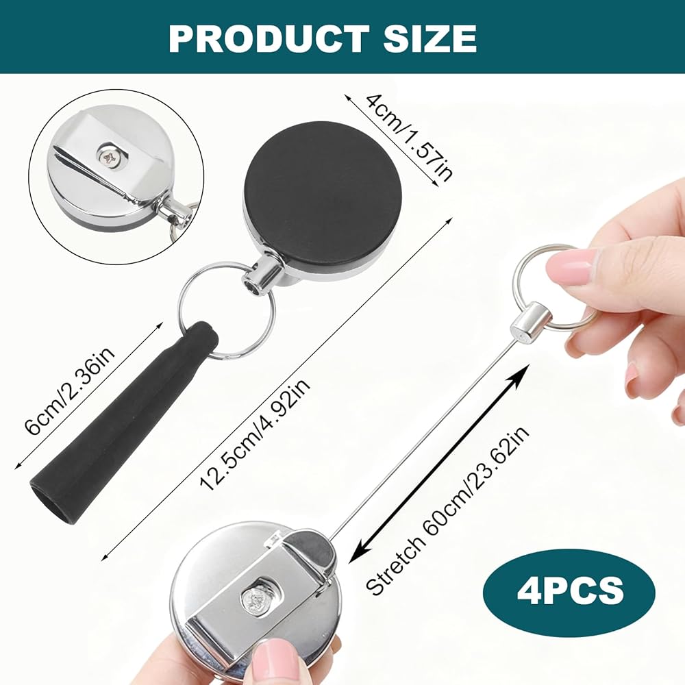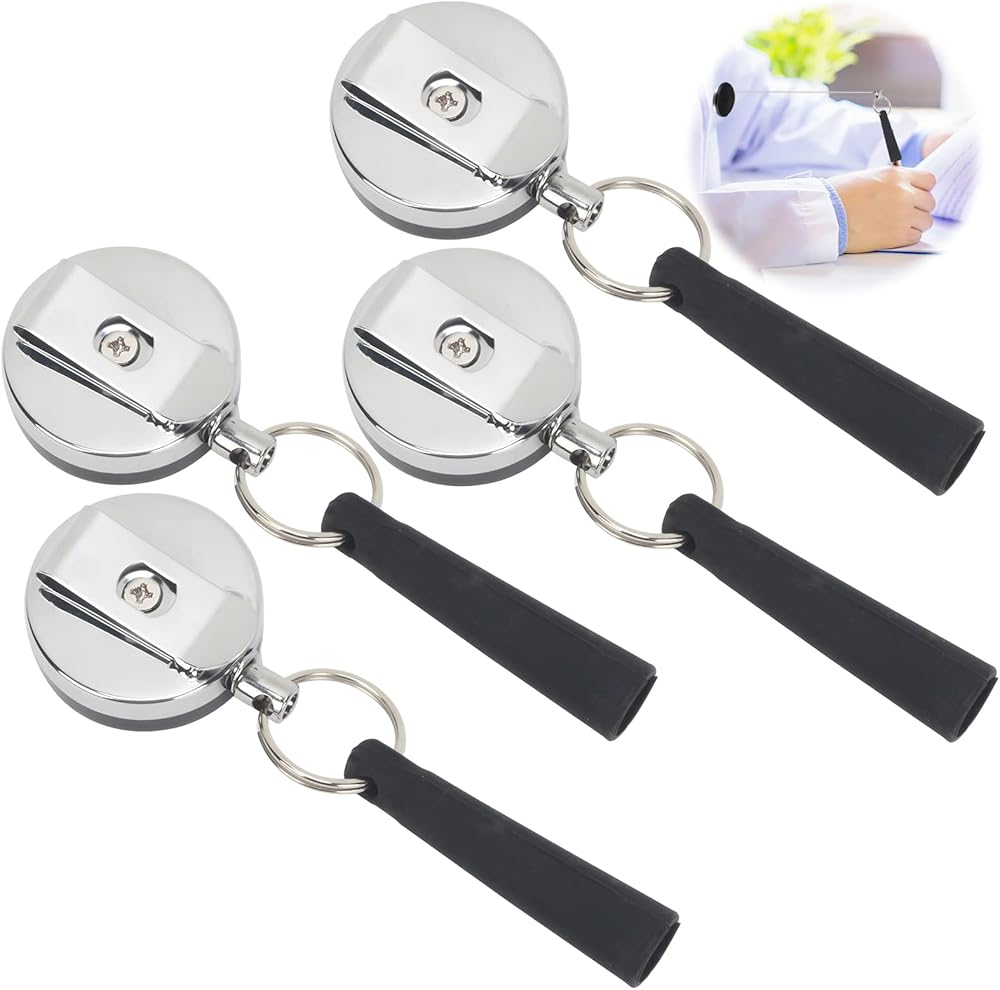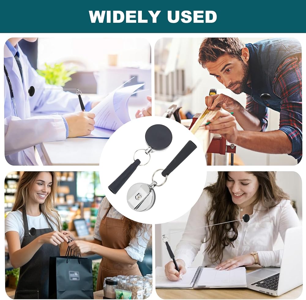 • This set includes 4 retractable pen holders with steel wire pulls, designed to secure pens/pencils while doubling as key rings—replacing loose pen clips that slip off pockets, and offering an anti-loss solution to keep writing tools and keys within reach. As pencil holders, they attach to bags, lanyards, or belts, eliminating the frustration of misplaced pens during work, school, or travel.​