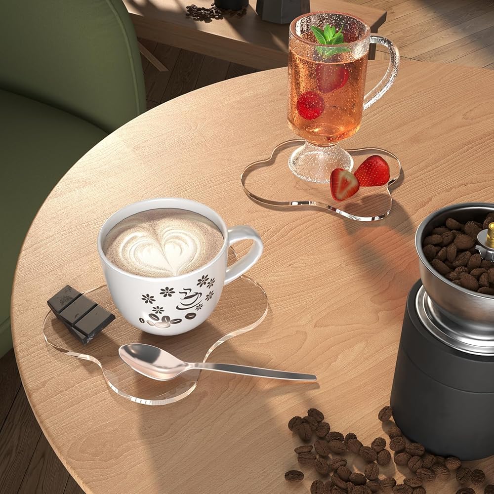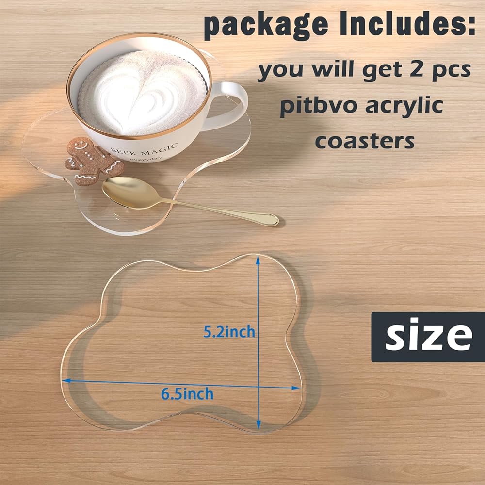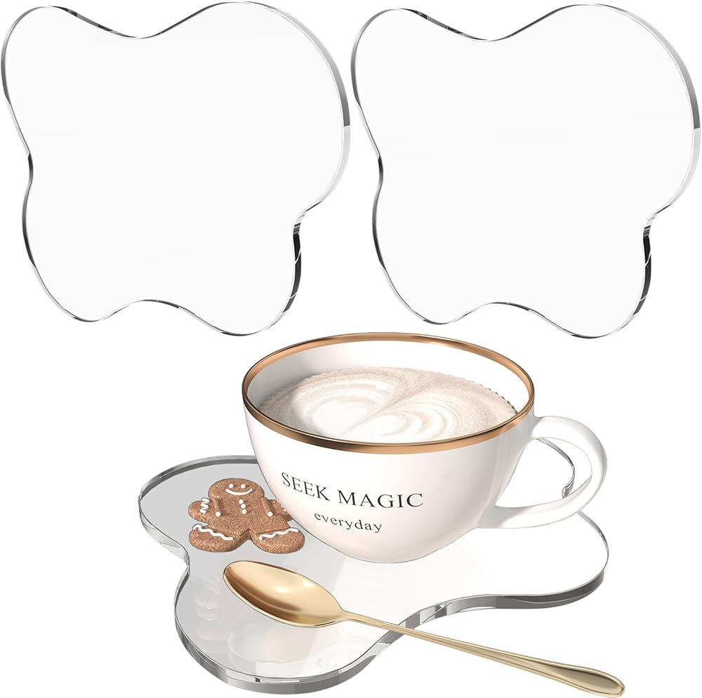 قطعتان من قواعد الأكواب المصنوعة من الأكريليك، قاعدة أكواب لطيفة لطاولة القهوة، قاعدة مقاومة للحرارة لسطح المكتب، قاعدة شفافة لمكتب المكتب المنزلي، ملحق لحماية سطح المكتب، على شكل سحابة