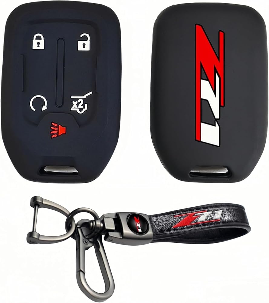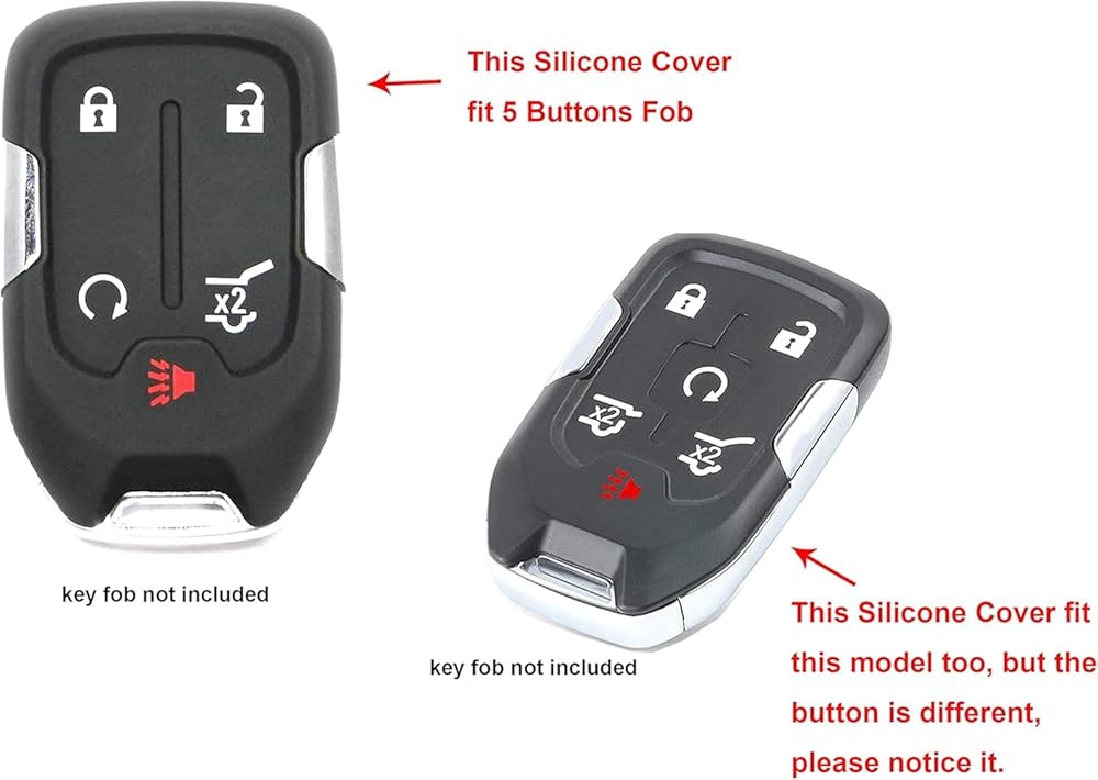 Silicone rubber key holder with key chain provides all-around protection for 4-button smart keys and helps to keep them looking like new