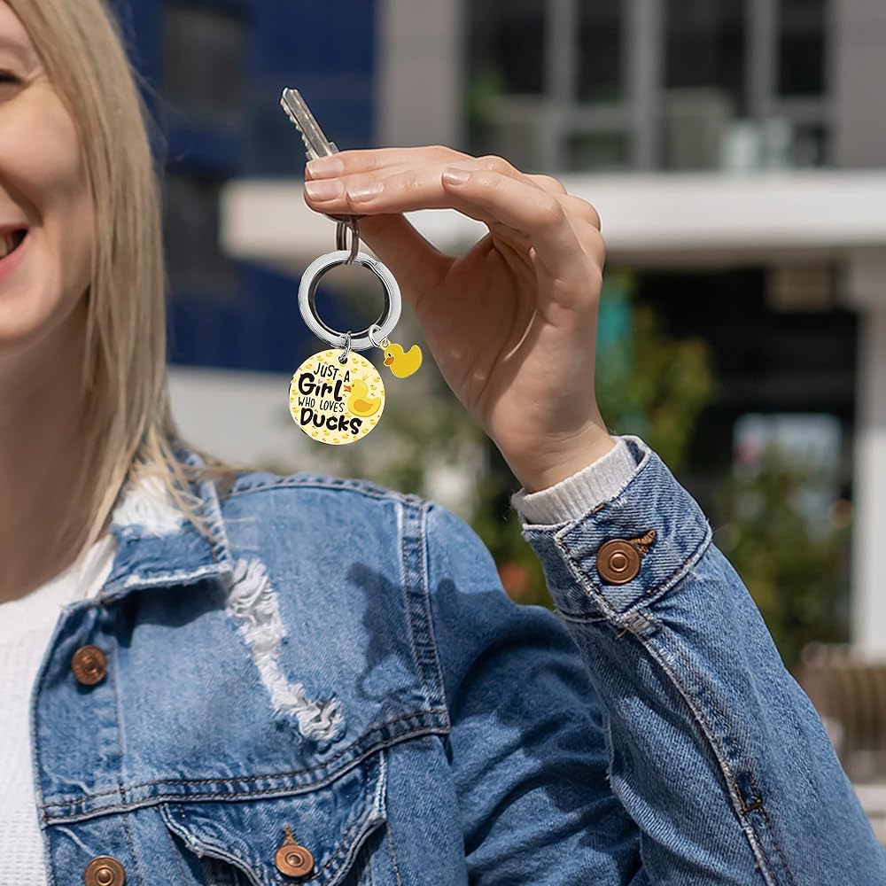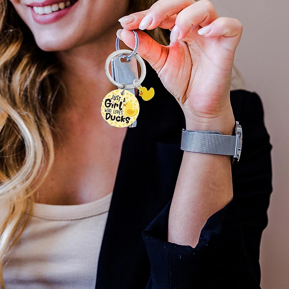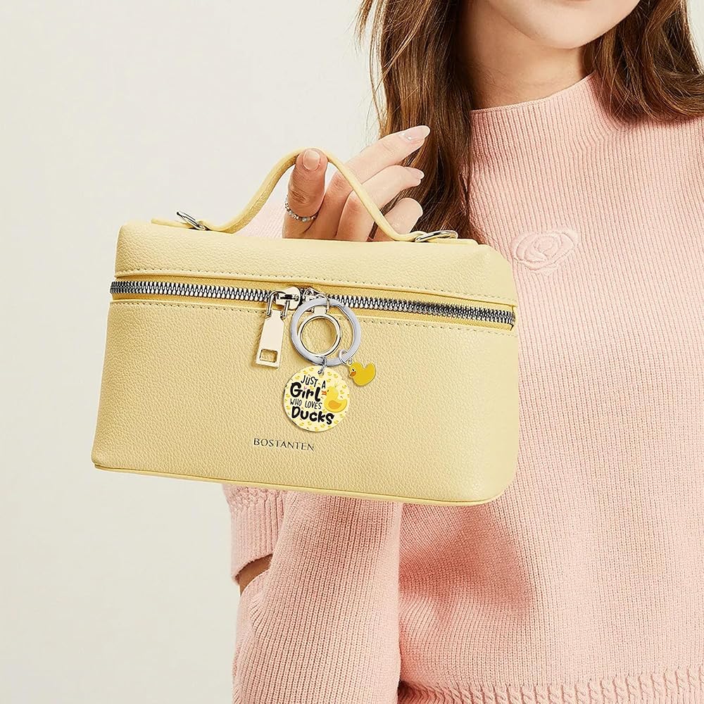 بطة المفاتيح لطيف الفتيات الهدايا - هدية مضحكة الملحقات لطيف عشاق الحيوانات الصفراء حقيبة حقائب اليد الملحقات الشخصية للمراهقين مجرد فتاة تحب البط الكبار الرجال النساء الأصدقاء هدية عيد الميلاد
