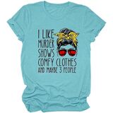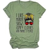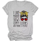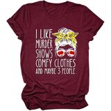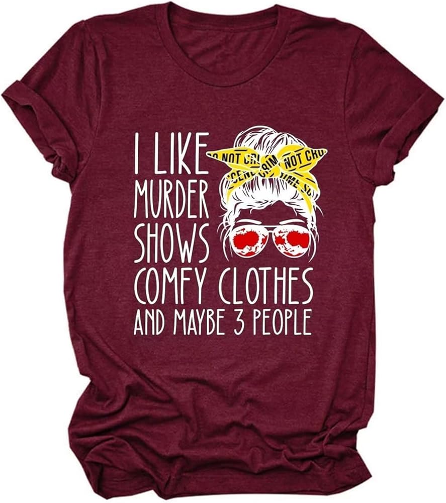 Features:I Like Murder Shows Comfy Clothes and Maybe 3 People saying shirts,short sleeve t shirt, casual style top, o neck blouse, stretch loose tops tee, funny letter print, cute,casual style,humorous, regular fit.Women funny t-shirt Is very fashionable and will never go out of style.