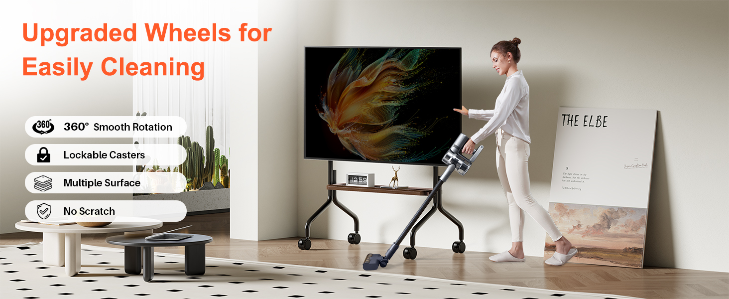 • استخدام متنقل ومتعدد الاستخدامات: مزود بعجلات دوارة 360 درجة، يمكنك نقل التلفزيون بسهولة من غرفة إلى أخرى. مثالي للمنزل أو المكتب أو الفصل الدراسي أو المعرض أو أي مساحة تتطلب حل عرض متحرك