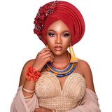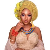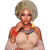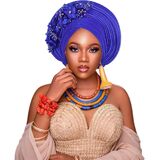 غطاء رأس أفريقي من نيجيريا Aso Oke أغطية للرأس قبعة عمامة لحفلات الزفاف مصنوعة يدويًا قبعة شعر أنيقة للنساء in Kuwait