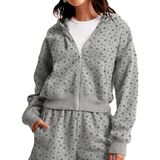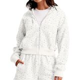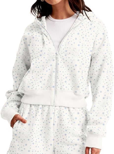 This lightweight zip front fleece cute cropped hoodie jacket, perfect for cooler days, features ditsy snowflake and flower pattern design, which adds lovely girlcore to its clean fit aesthetic, and relaxed loose fit with ribbed cuffs and hem offer snug fit even with layering tops, versatile for daily healthy life.