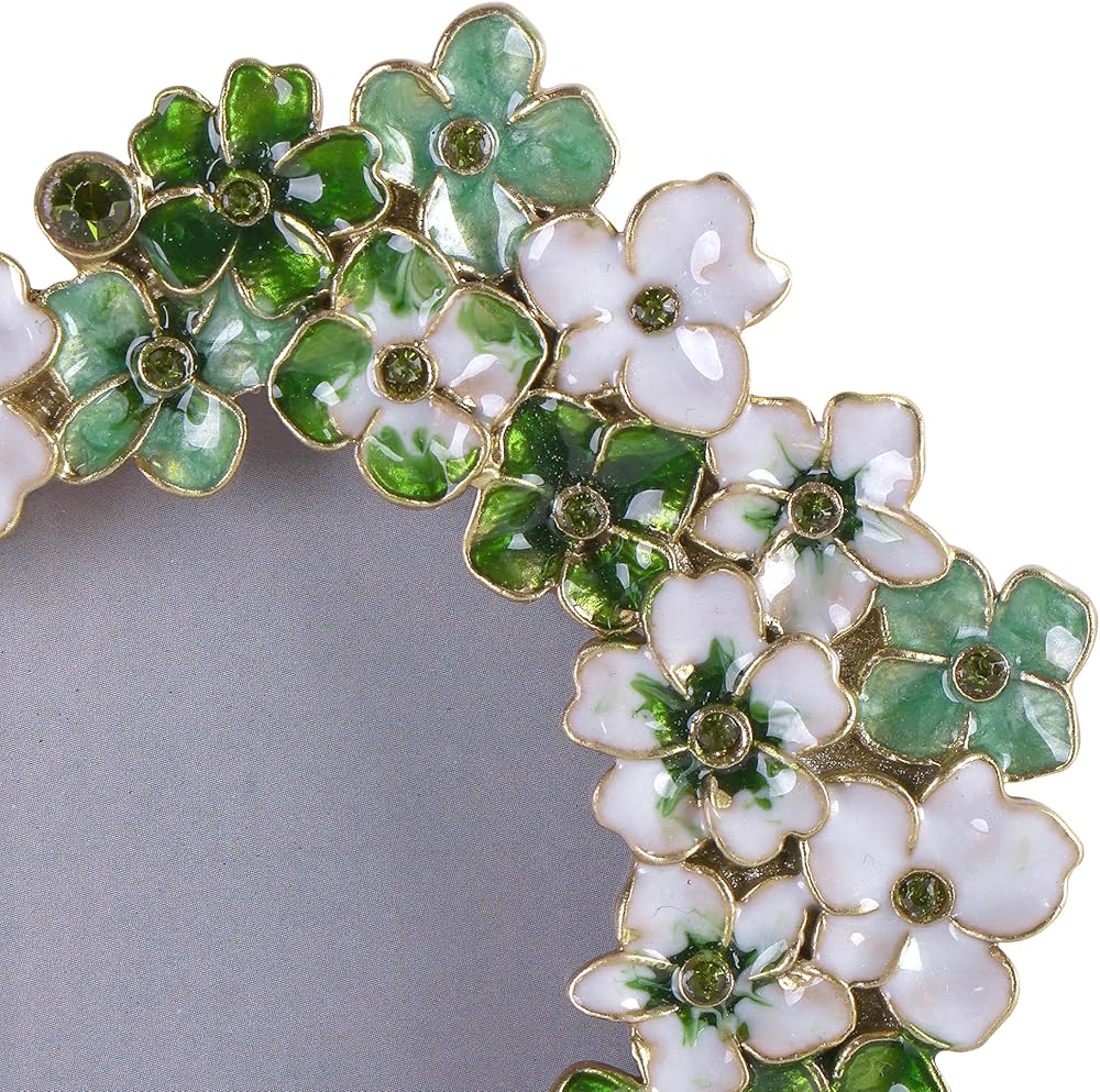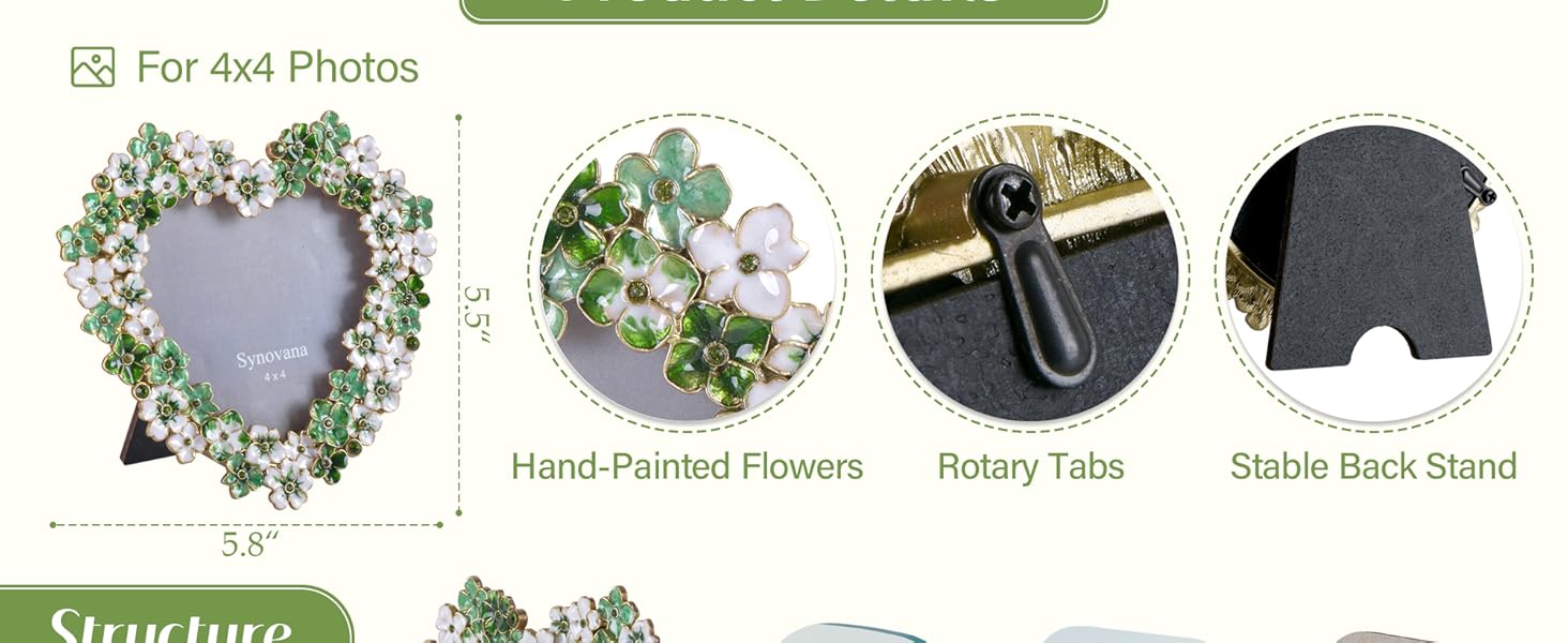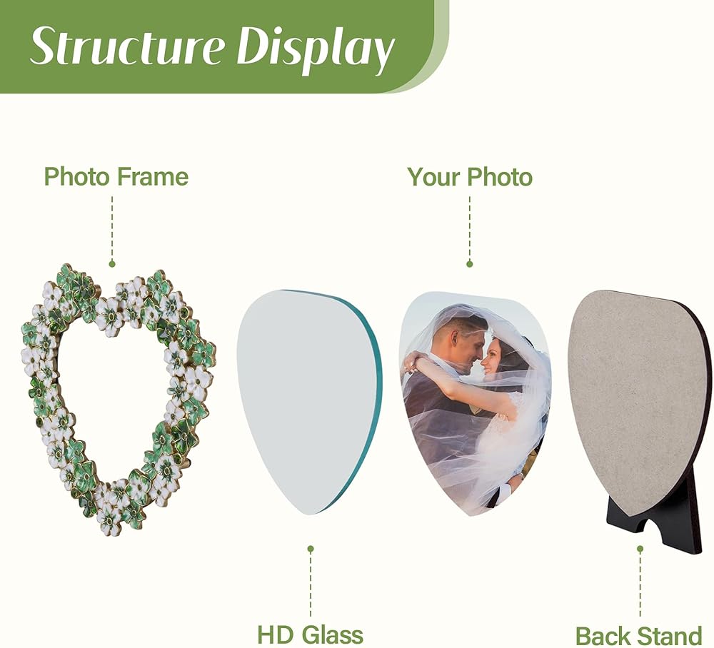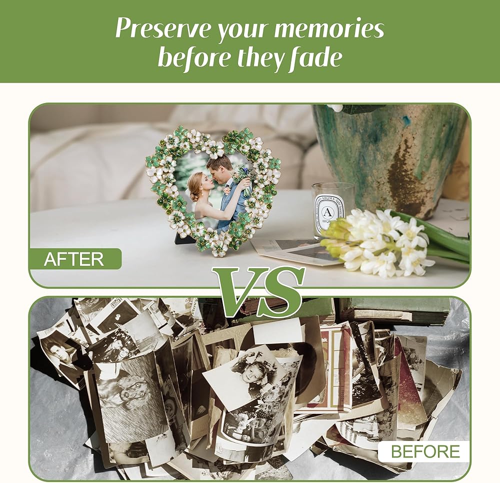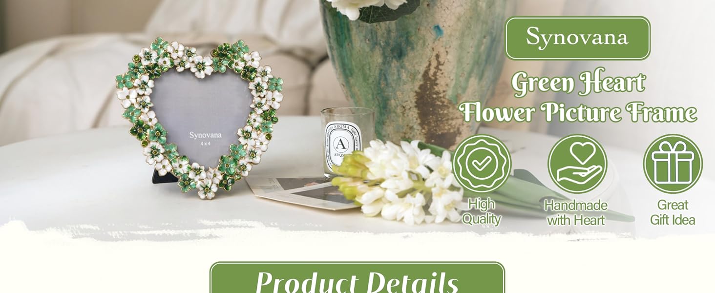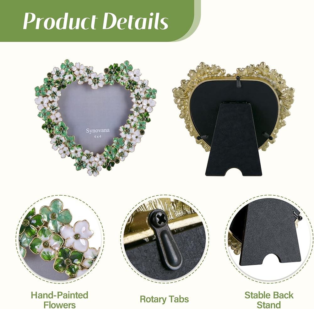 إطار صورة زهور خضراء - إطار صور على شكل قلب مقاس 4 × 4 للذكرى السنوية، هدية عرض على الطاولة
