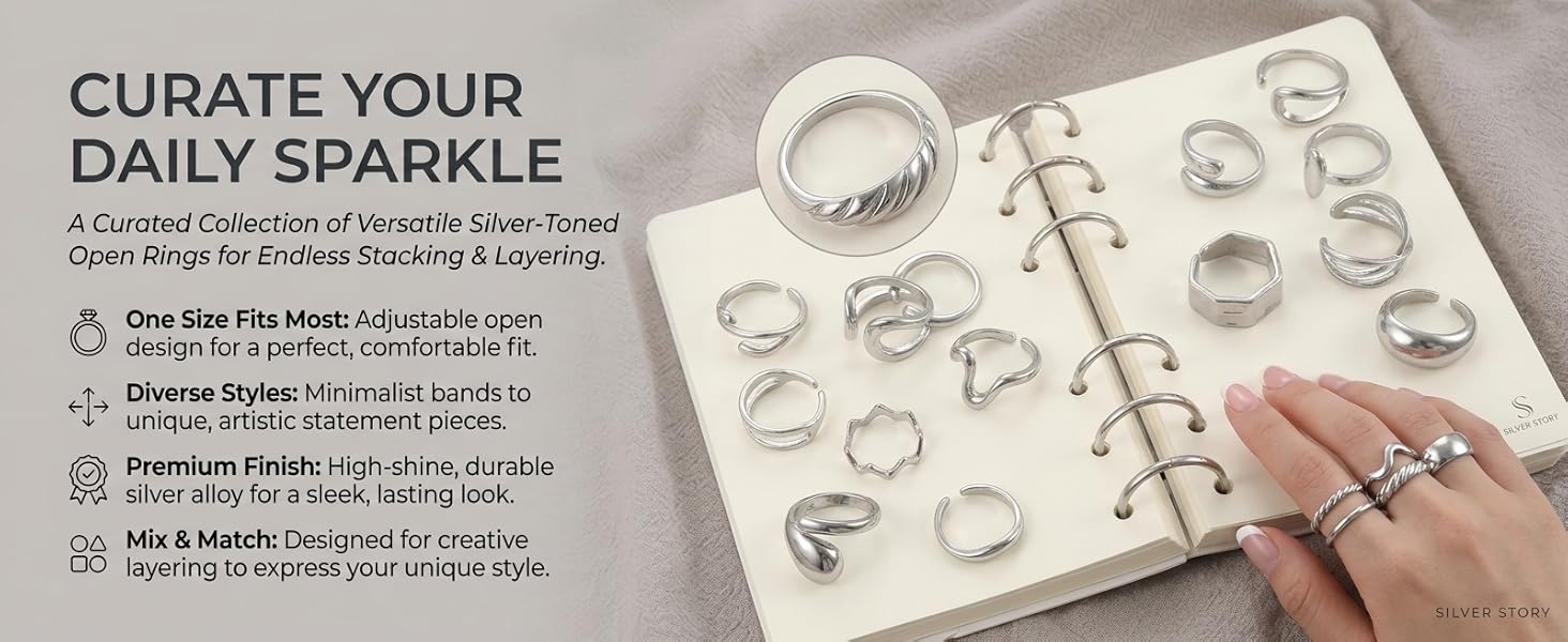 • مقاسات متعددة: يبلغ قطر معظم مقاسات الخواتم حوالي 0.7 سم، ويمكن تعديل هذه الحلقات المفتوحة قليلاً، لذلك يمكنك اختيار الخاتم المناسب لارتدائه وفقًا لحجم إصبعك.