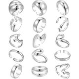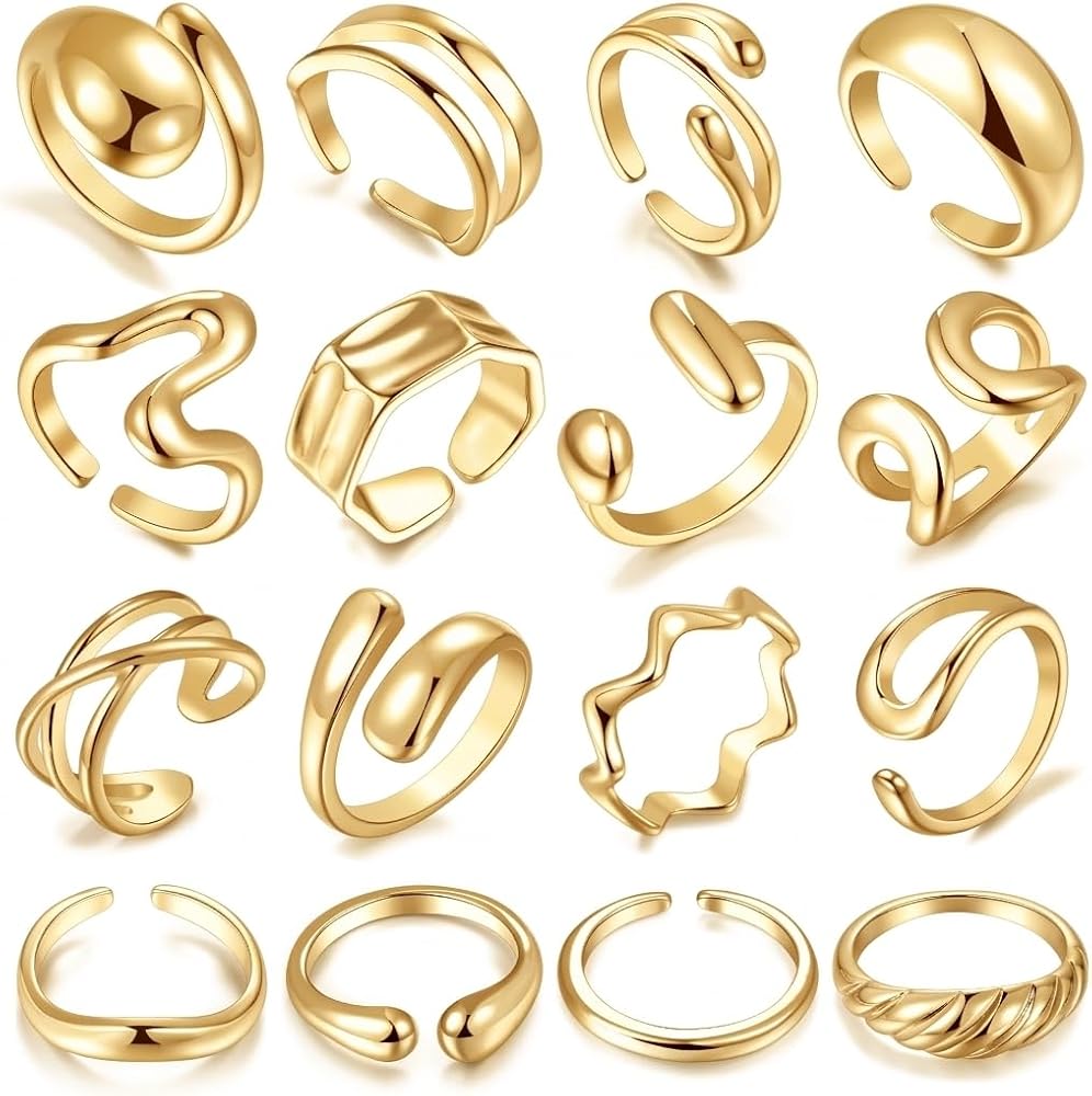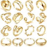 مجموعة خواتم ذهبية مكتنزة للنساء بطول 17 كيلومتر مكونة من 16 قطعة، قبة سميكة مطلية بالذهب عيار 14 قيراط حلقات مفتوحة قابلة للتكديس هدايا مجوهرات عصرية وأنيقة in Kuwait