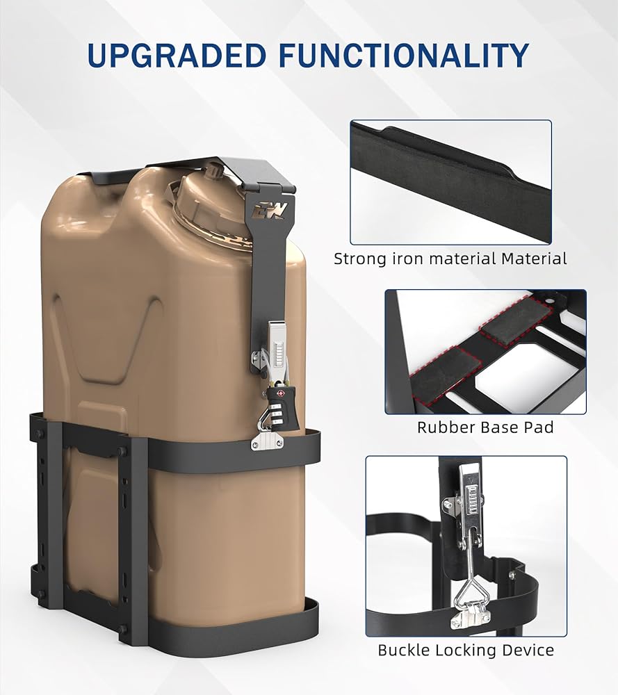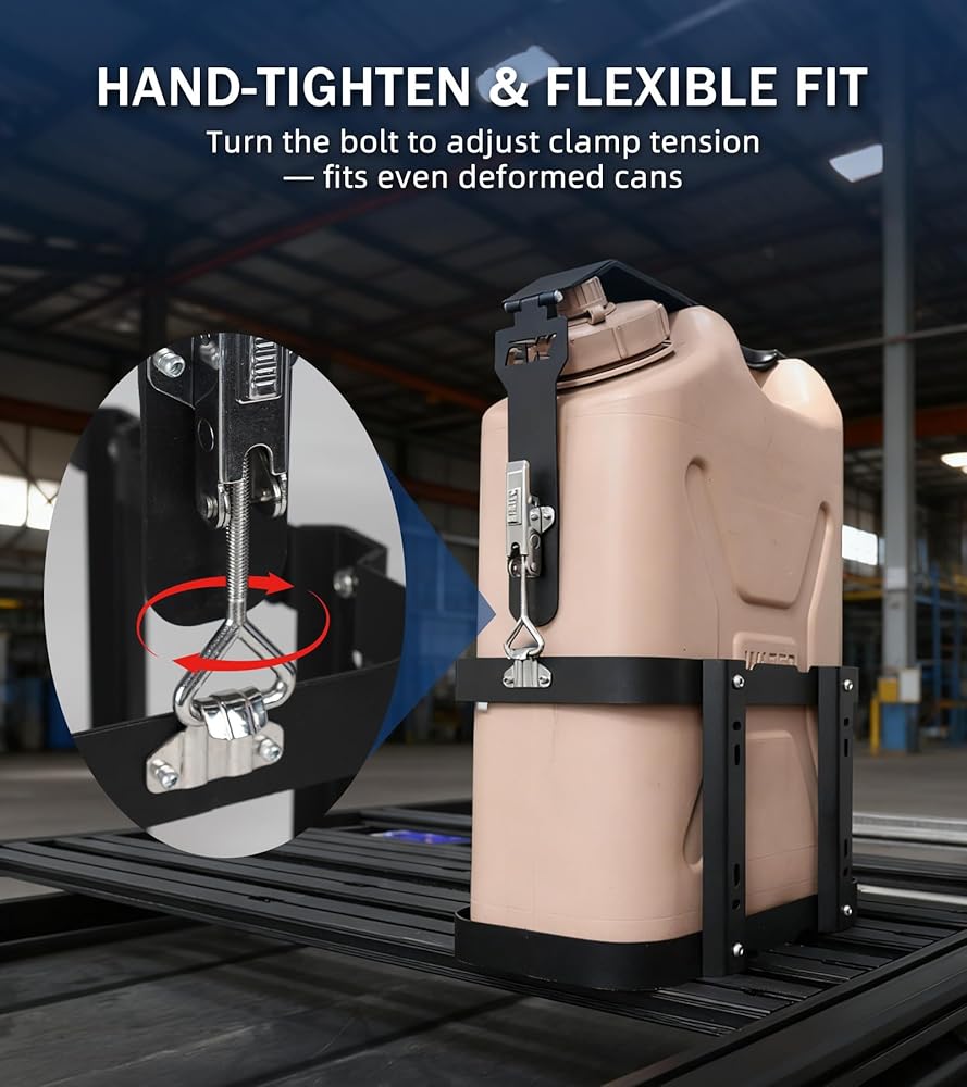 • ملاءمة قابلة للتعديل ووصول آمن: على عكس الدعامات ذات الحجم الواحد، يتيح لك مزلاج حاوية مياه التخييم المطور ضبط مساحة الدعامة باستخدام البراغي، مما يضمن ملاءمة محكمة لحاويتك. مناسبة خصيصًا لحاوية مياه سيبتر، لذلك فأنت تعلم أنها مصممة لتناسب معداتك