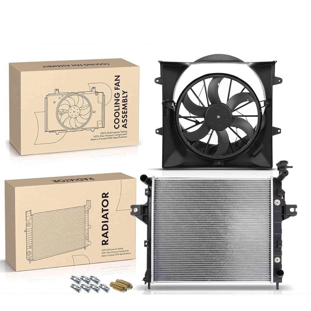 Type Radiator; Material Aluminum, Plastic; Features Crossflow Radiator, 1 Row; MPN52079425AB, 52079425AC, 52079425AD, 52079425AE, 52074491AB; OE/OEM Part Number 52079489AB, 52079528AB; Inlet Diameter 1 1/2 in.; Interchange Part Number CU2263, 8012263, 35155; Item Height 23 9/16 in.; Item Width 21 9/16 in.; Outlet Diameter 1 1/2 in.; Superseded Part Number 620010, 620070, 630450, 620200, 2263; Core Thickness (in.) 1; Inlet Header (in.) 22 5/8 × 2 1/2; Outlet Header (in.) 22 5/8 × 2 1/2; Transmission Oil Cooler Included Yes; Engine Oil Cooler Included No; Fan Motor Type Brushed; Fan Connector Terminal Quantity 2; Fan Shroud Included Yes; For Jeep; Model Grand Cherokee; Year 1999-2000; Engine V8 4.7L; Note Radiator w/ Transmission Oil Cooler, Automatic Trans.; Note-2 Cooling Fan Assembly with Shroud;