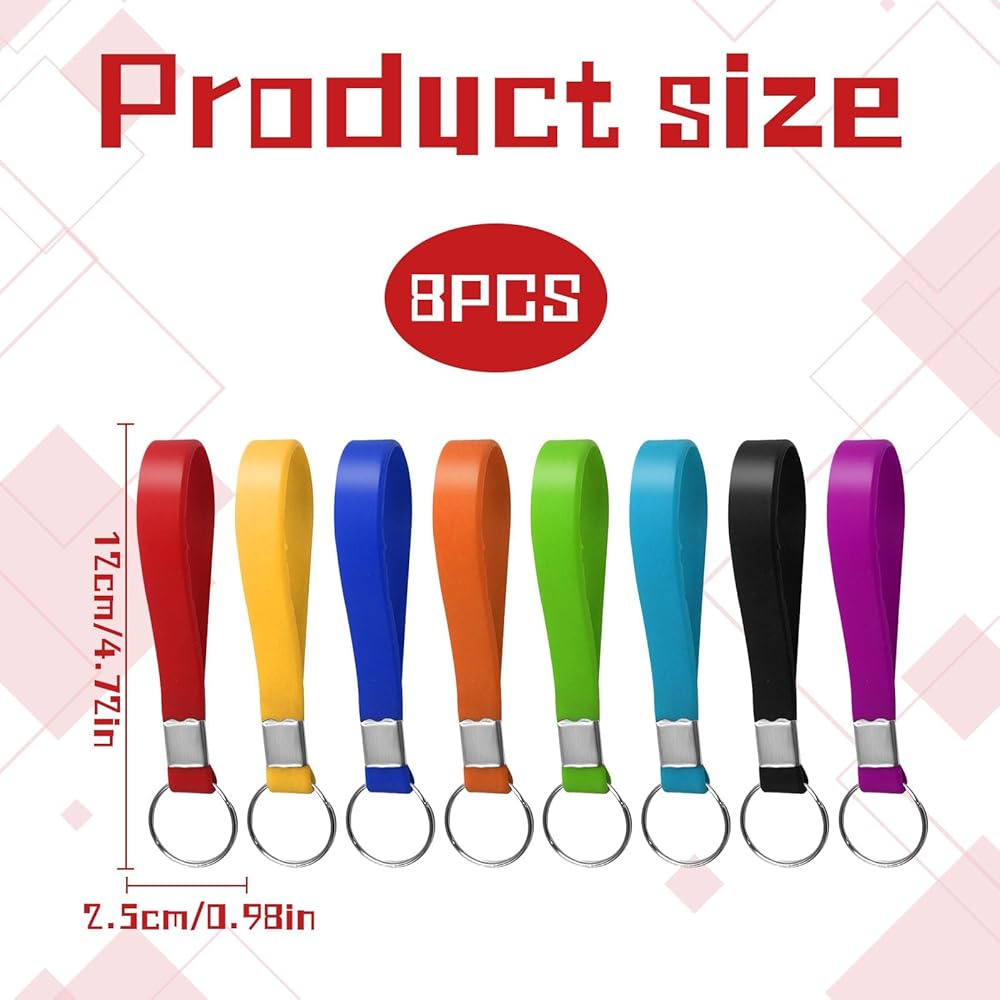 حلقات مفاتيح للسوار من السيليكون، 8 عبوات متعددة الألوان، حلقات معدنية مقسمة، بطول 4.7 بوصة