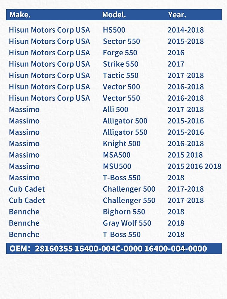 • 【Wide Compatibility】Designed to fit a wide range of Hisun Motors, Massimo, Cub Cadet, and Bennche models including HS500, Sector 550, T-Boss 550, and more, ensuring optimal fuel delivery for various off-road vehicles.