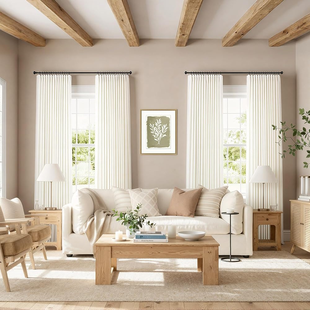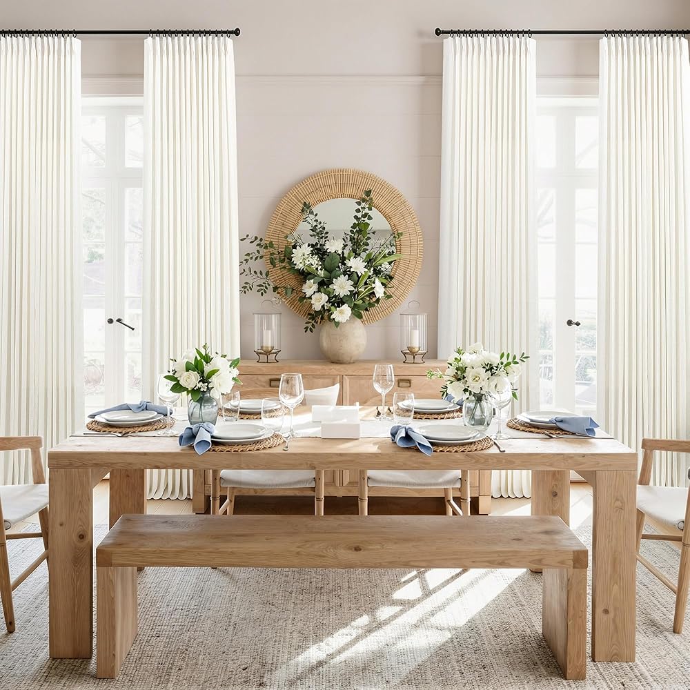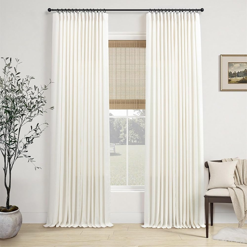 مزيج الكتان السميك: هذه الستائر الكتانية السميكة مصنوعة من نسيج عالي الجودة من الكتان والبوليستر. تخلق هذه التركيبة الفريدة توازنًا بين الملمس الريفي المحايد، والخفة الهوائية، والستارة الكبيرة والمتطورة، مما يضيف أجواء مريحة وراقية إلى المزرعة الحديثة، أو البوهو، أو المنزل الريفي الفرنسي، أو المساحات المستوحاة من الساحل.