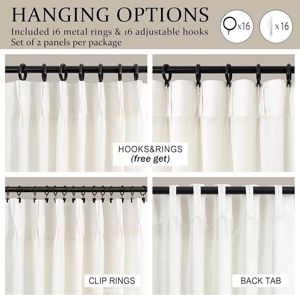تصميم أنيق بثنيات صغيرة وشريط خلفي: توفر هذه الستائر الكتانية ذات الطيات المضغوطة خيارات تعليق متعددة الاستخدامات: 1. يتم تعليقها باستخدام الخطافات والحلقات المضمنة لانزلاق سلس ومظهر كلاسيكي مطوي. 2. استخدم العروات الخلفية لإخفاء القضيب وإنشاء نمط كاجوال نظيف. 3. متوافق مع أنظمة المسار باستخدام خطافاتنا القابلة للتعديل. 4. يمكن أيضًا تعليقها بحلقات المشبك (غير متضمنة). اختر الطريقة التي تناسب المساحة الخاصة بك