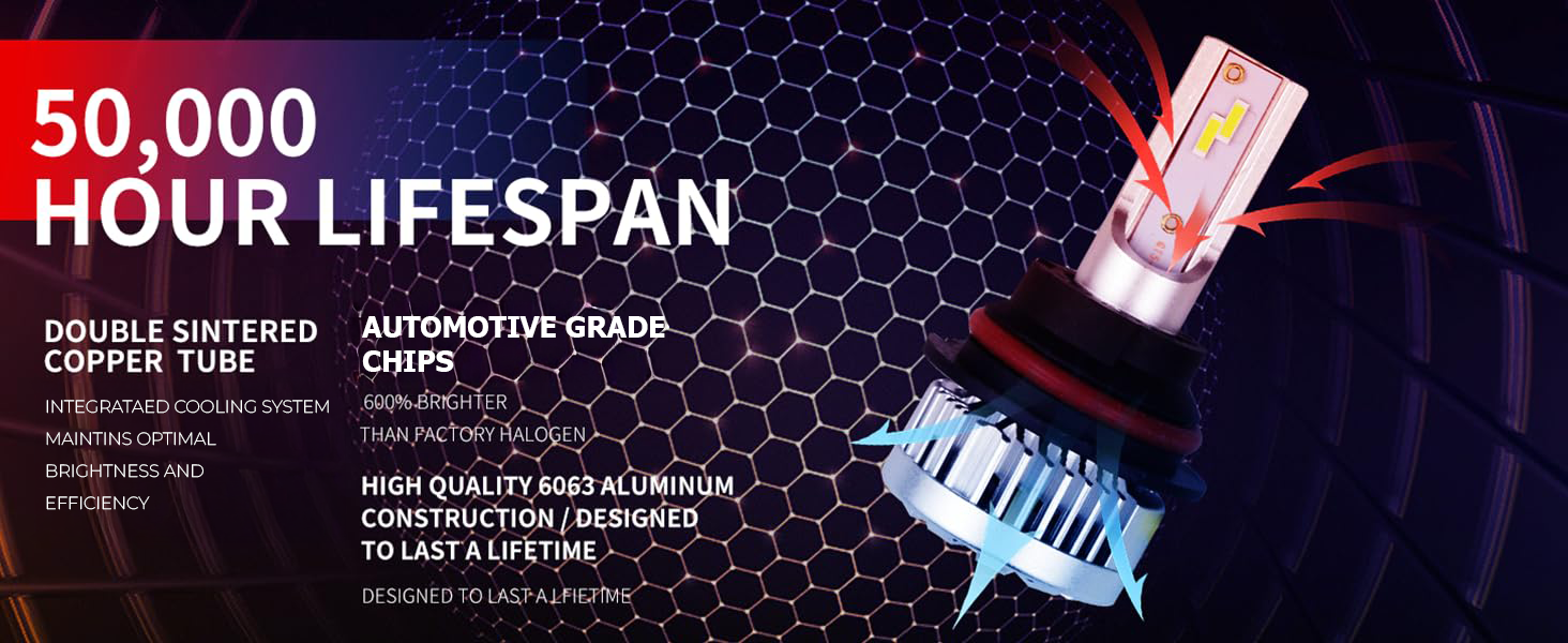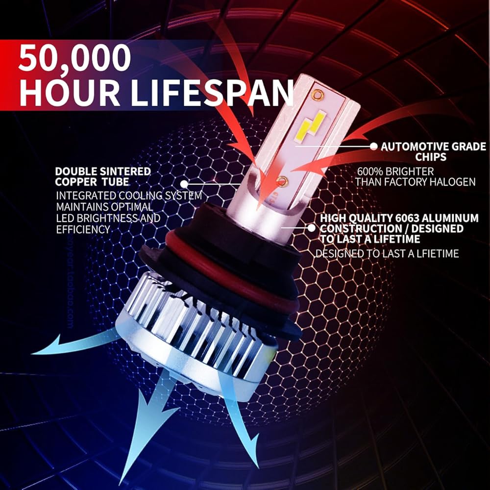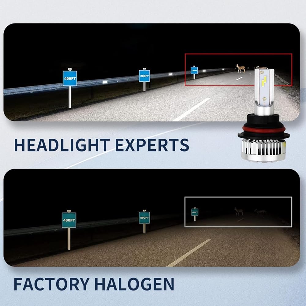 【أكثر سطوعًا بنسبة 600% من الهالوجين】- رقائق عالية الجودة للسيارات مع 22000 لومن حقيقي لكل زوج، درجة حرارة لون 6000 كلفن. يوفر تصميم نمط الشعاع الذي يركز على المصنع نطاق إضاءة أوسع وأبعد يصل إلى 6 مرات أكثر سطوعًا من لمبة الهالوجين الأصلية. مصنوعة لتجميع المصنع الخاص بك.