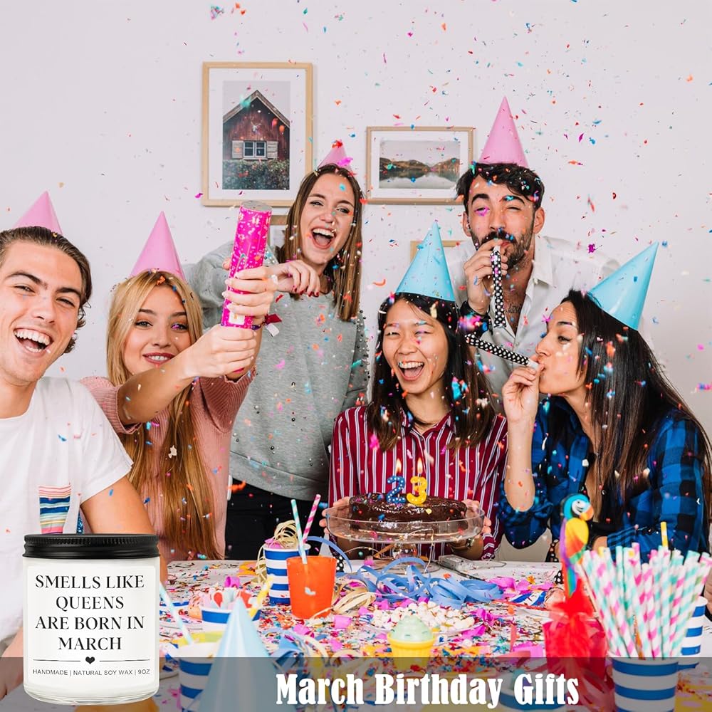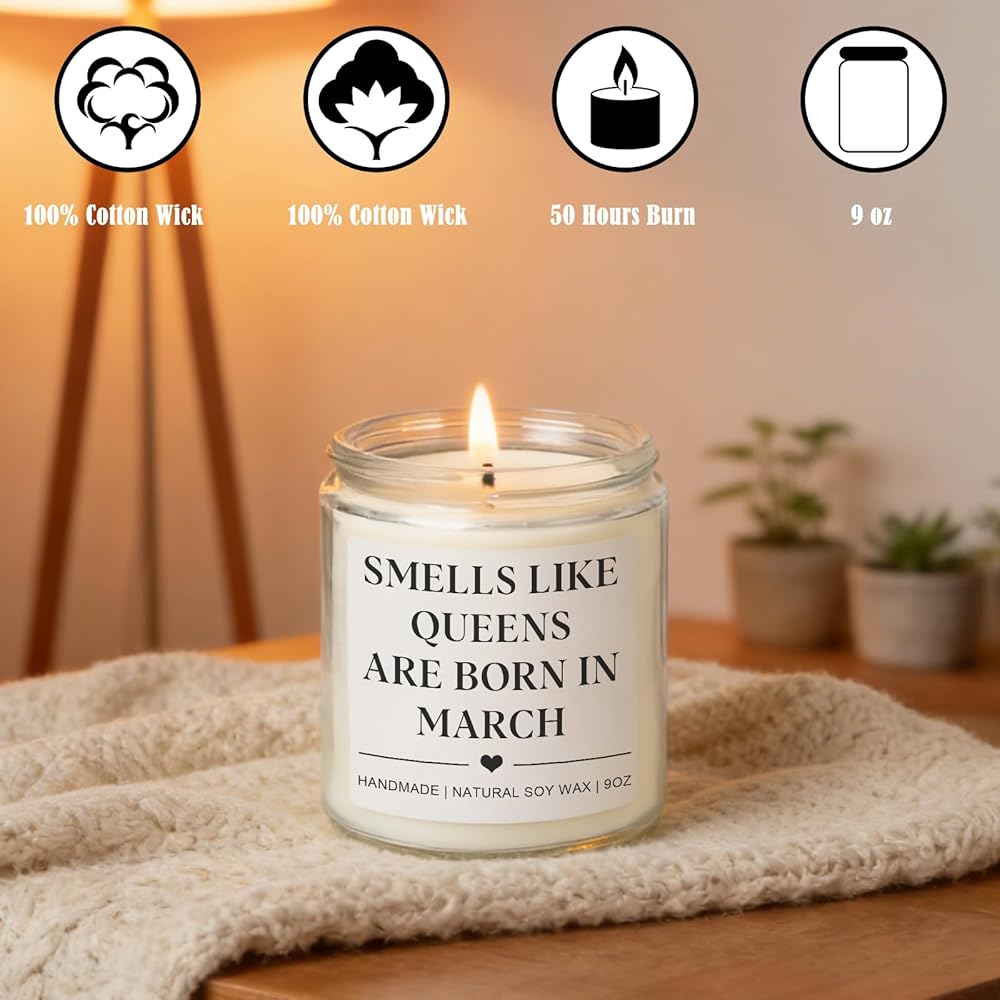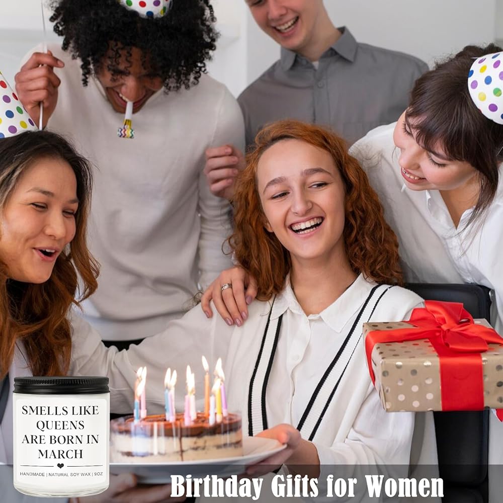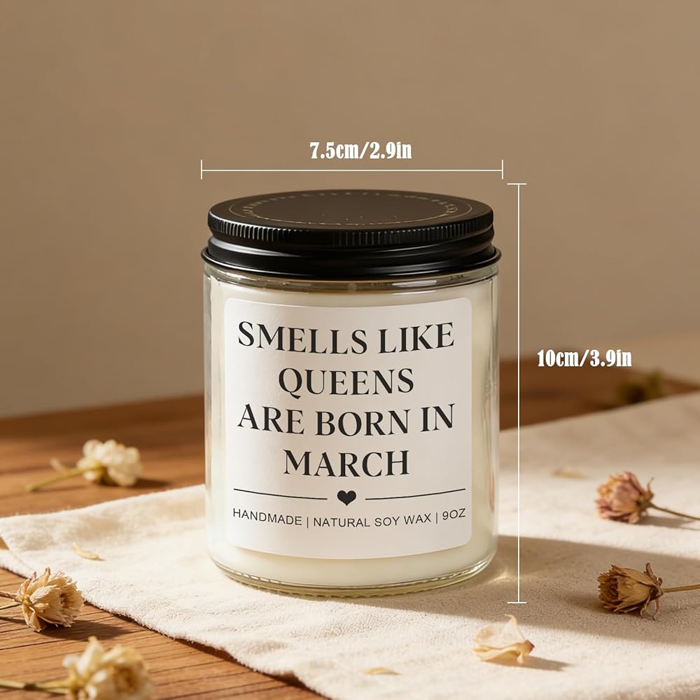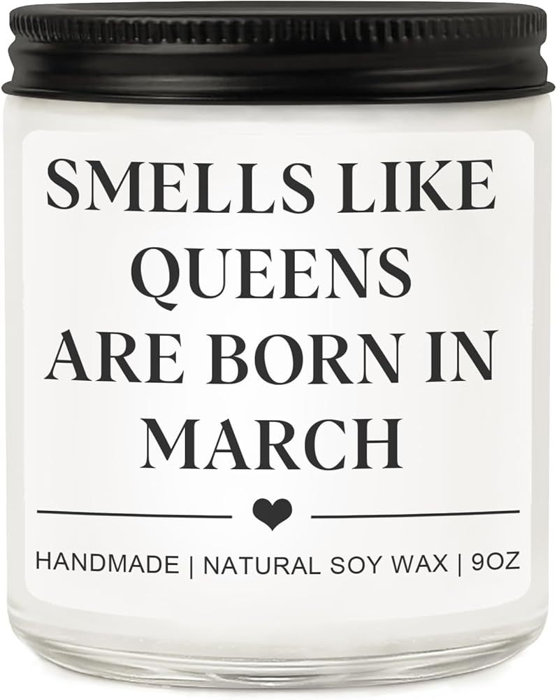 • March Birthday Gifts for Women Men:Looking for the best birthday gift for women or men who was born in March. Our "Smell like queens are born in March" candle is the perfect choice! Great girls birthday gifts, woman birthday gifts ideas and even gifts for men
